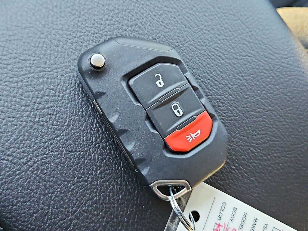 This Jeep comes with:Quick Order Package 24B Sport, 110 Mph Vehicle Max Speed Calibration, 12.3 Touchscreen Display, 3.73 Rear Axle Ratio, 4-Wheel Disc Brakes, 4G LTE Wi-Fi Hot Spot, 8 Speakers, ABS brakes, Air Conditioning, Alexa Built-in, AM/FM radio: SiriusXM with 360L, Apple CarPlay, Apple CarPlay/Android Auto, Black 3-Piece Hard Top, Brake assist, Compass, Connectivity - US/Canada, Delay-off headlights, Driver door bin, Driver vanity mirror, Dual front impact airbags, Dual front side impact airbags, Electronic Stability Control, For Details, Visit DriveUconnect.com, Freedom Panel Storage Bag, Front anti-roll bar, Front Bucket Seats, Front Center Armrest w/Storage, Front fog lights, Front License Plate Bracket, Front reading lights, Google Android Auto, Illuminated entry, Integrated Center Stack Radio, Integrated roll-over protection, Low tire pressure warning, MOPAR All-Weather Slush Mats, MOPAR Spray in Bedliner, Normal Duty Suspension, Occupant sensing airbag, Outside temperature display, Overhead airbag, Panic alarm, ParkView Rear Back-Up Camera, Passenger door bin, Passenger vanity mirror, Power steering, Power windows, Radio data system, Radio: Uconnect 5 with 12.3 Display, Rear anti-roll bar, Rear reading lights, Rear Sliding Window, Rear Window Defroster, Remote keyless entry, SiriusXM Radio Service, SiriusXM with 360L, Speed control, Split folding rear seat, Steering wheel mounted audio controls, Tachometer, Telescoping steering wheel, Tilt steering wheel, Traction control, Trip computer, USB Host Flip, Variably intermittent wipers, Voltmeter, and Wheels: 17 x 7.5 Black Steel StyleD. Prices do not include Protection Package + includes Vehicle Tint at $599, Door Edge Guards at $399, Wheel Locks at $199, PermaPlate at $700, LoJack at $1,199 and Etch at $899. Price does not include $699 Dealer Documentation Fee, taxes, and license fee. Price includes: $1000 - 2026 West BC Retail Bonus Cash . Exp. 03/02/2026