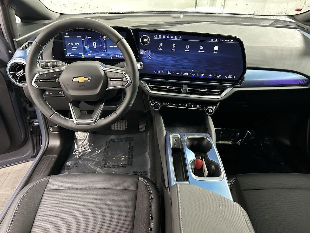 This vehicle is well equipped with many features including: Blackout Package (LPO) (Black Bowtie Emblem (LPO), Black Nameplates (LPO), and Black Painted Mirror Caps (LPO)), Preferred Equipment Group 2LT, 19 Wheels, 4-Wheel Disc Brakes, 6 Speakers, 6-Speaker Audio System Feature, 6-Way Manual Front Passenger Seat Adjuster, 8-Way Power Driver Seat Adjuster, ABS brakes, Air Conditioning, AM/FM radio: SiriusXM with 360L, Auto High-beam Headlights, Auto-dimming Rear-View mirror, Automatic temperature control, Brake assist, Bumpers: body-color, Delay-off headlights, Driver 4-Way Power Lumbar Control, Dual front impact airbags, Electronic Stability Control, Emergency communication system: OnStar and Chevrolet connected services capable, Evotex Seat Trim, Four wheel independent suspension, Front Bucket Seats, Front Electric AWD, Front reading lights, Fully automatic headlights, Heated door mirrors, Heated Driver & Fr Passenger Seats Cushion & Seatback, Heated front seats, Heated steering wheel, Low tire pressure warning, Navigation System, Navigation system: Google built-in compatibility (select service plan required, terms and limitations apply), Outside temperature display, Overhead console, Panic alarm, Power door mirrors, Power driver seat, Power Liftgate, Power steering, Power windows, Radio: 17.7 Diagonal Advanced Color LCD Display, Rear anti-roll bar, Rear seat center armrest, Rear window defroster, Rear window wiper, Remote keyless entry, Security system, SiriusXM w/360L, Speed control, Split folding rear seat, Spoiler, Steering wheel mounted audio controls, Telescoping steering wheel, Traction control, Trip computer, Turn signal indicator mirrors, and Variably intermittent wipers.