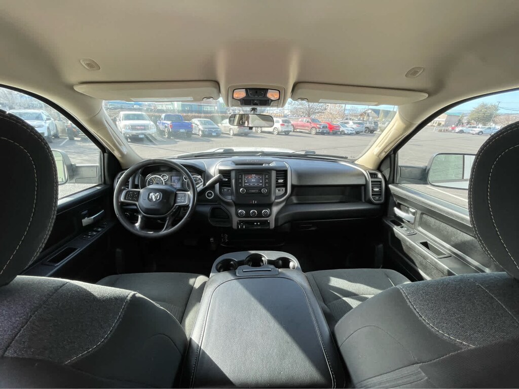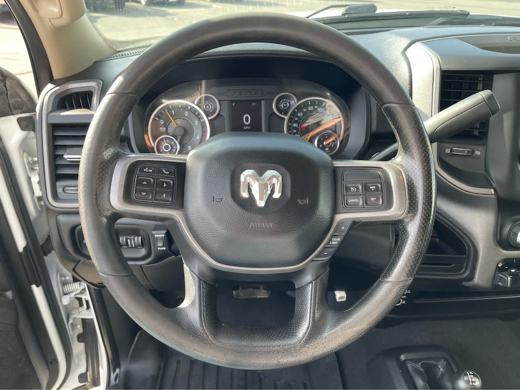ENGINE: 6.7L I6 CUMMINS TURBO DIESEL Selective Catalytic Reduction (Urea), Dual 730 Amp Maintenance Free Batteries, Cummins Turbo Diesel Badge, Heavy Duty Engine Cooling, Supplemental Heater, RAM Active Air, Tow Hooks, Diesel Exhaust Brake, Front Bumper Sight Shields, Capless Fuel Fill w/o Discriminator, TRADESMAN LEVEL 2 EQUIPMENT GROUP, SiriusXM Satellite Radio, Rear Window Defroster, Satin Chrome Interior Door Handles, For More Info, Call 800-643-2112, Rear Power Sliding Window, Carpet Floor Covering, Remote Keyless Entry, CHROME APPEARANCE GROUP Bright Rear Bumper, Chrome Grille Surround, Matte Black Mesh Grille w/Chrome, 18 Steel Spare Wheel, Wheels: 18 x 8.0 Steel Chrome Clad, Tires: LT275/70R18E BSW AS, Bright Front Bumper, CHROME FLAT WHEEL-TO-WHEEL SIDE STEPS, POWER ADJUST & HEATED BLACK TOW MIRRORS Mirror Running Lights, Exterior Mirrors w/Supplemental Signals, Exterior Mirrors Courtesy Lamps, Trailer Tow Mirrors, TRANSMISSION: 6-SPEED AUTOMATIC (68RFE) Urethane Shift Control, BLACK, CLOTH 40/20/40 BENCH SEAT Front Armrest w/Cupholders, Manual Adjust 4-Way Front Passenger Seat. Ram Tradesman with Bright White Clearcoat exterior and Black interior features a Straight 6 Cylinder Engine with 370 HP at 2800 RPM*.
