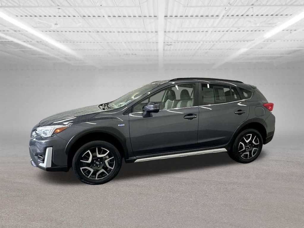 Magnetite Gray Metallic 2023 Subaru Clean CARFAX. Crosstrek Hybrid AWD Lineartronic CVT 2.0L DOHC Dealer Detailed, Fluid Change, Dealer Inspected, Multi Point Safety and Mechanical Inspection Performed by Certified Technician, 2.0L DOHC, 4-Wheel Disc Brakes, 6 Speakers, ABS brakes, Air Conditioning, AM/FM radio: SiriusXM, Anti-whiplash front head restraints, Auto High-beam Headlights, Automatic temperature control, Brake assist, Bumpers: body-color, CD player, Driver vanity mirror, Dual front impact airbags, Dual front side impact airbags, Electronic Stability Control, Emergency communication system: STARLINK Safety and Security (Subscription Required), Exterior Parking Camera Rear, Four wheel independent suspension, Front Bucket Seats, Front Center Armrest, Front fog lights, Front reading lights, Fully automatic headlights, Heated door mirrors, Heated Front Bucket Seats, Heated front seats, Leather-Trimmed Upholstery, Low tire pressure warning, Occupant sensing airbag, Outside temperature display, Overhead airbag, Overhead console, Panic alarm, Passenger door bin, Passenger vanity mirror, Power door mirrors, Power driver seat, Power steering, Power windows, Radio data system, Radio: Subaru STARLINK 8.0 Multimedia Plus System, Rear seat center armrest, Rear window defroster, Rear window wiper, Remote keyless entry, Security system, Speed control, Speed-sensing steering, Spoiler, Standard Model, Steering wheel mounted audio controls, Subaru STARLINK Smartphone Integration, Telescoping steering wheel, Tilt steering wheel, Traction control, Turn signal indicator mirrors, Variably intermittent wipers, Wheels: 18 x 7.0J Alloy Black w/Machine Finish.
