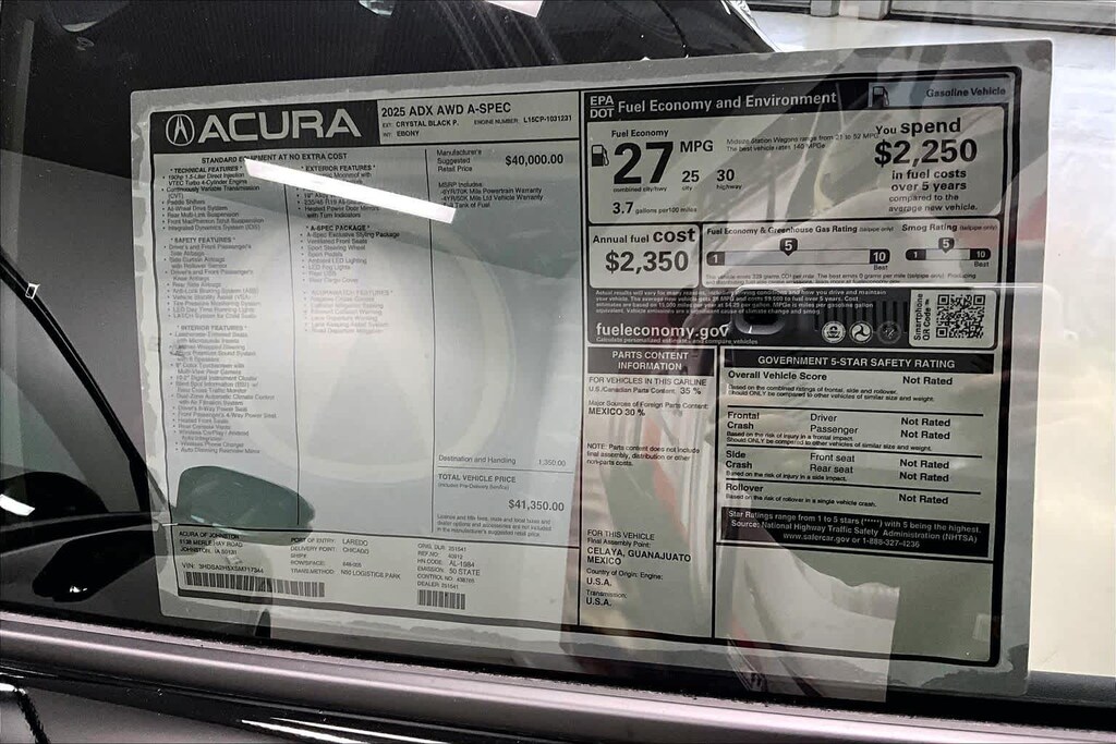 Crystal Black Pearl 2025 Acura ADX A-Spec Package AWD CVT 1.5L I4 Turbocharged DOHC 16V 190hp