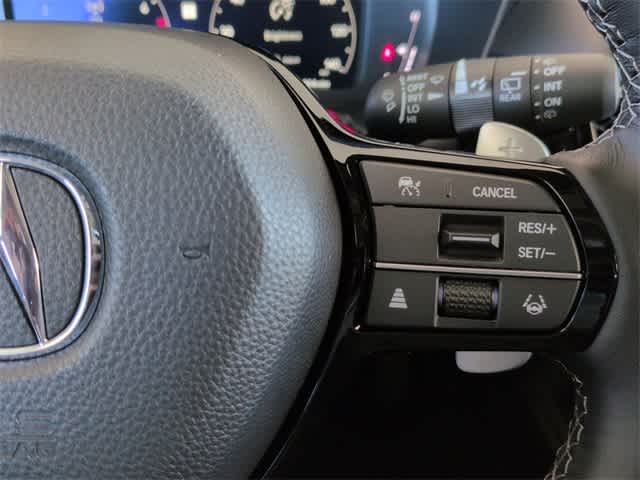 This 2025 Acura ADX in Solar Silver Metallic, features 4-Wheel Disc Brakes, 8 Speakers, ABS brakes, Air Conditioning, Alloy wheels, AM/FM radio, Apple CarPlay/Android Auto, Auto High-beam Headlights, Auto-dimming Rear-View mirror, Automatic temperature control, Brake assist, Bumpers: body-color, Delay-off headlights, Driver door bin, Driver vanity mirror, Dual front impact airbags, Dual front side impact airbags, Electronic Stability Control, Emergency communication system: AcuraLink, Exterior Parking Camera Rear, Four wheel independent suspension, Front anti-roll bar, Front Bucket Seats, Front Center Armrest, Front dual zone A/C, Front reading lights, Fully automatic headlights, Heated door mirrors, Heated Front Bucket Seats, Heated front seats, Illuminated entry, Knee airbag, Lane departure: Lane Keeping Assist System (LKAS) active, Leather Shift Knob, Leather steering wheel, Leatherette Trimmed Seats, Low tire pressure warning, Occupant sensing airbag, Outside temperature display, Overhead airbag, Overhead console, Panic alarm, Passenger door bin, Passenger vanity mirror, Power door mirrors, Power driver seat, Power Liftgate, Power moonroof, Power steering, Power windows, Radio data system, Radio: AM/FM Acura Premium Audio System, Rear anti-roll bar, Rear reading lights, Rear seat center armrest, Rear side impact airbag, Rear window defroster, Rear window wiper, Remote keyless entry, Security system, Speed control, Speed-sensing steering, Split folding rear seat, Spoiler, Steering wheel mounted audio controls, Tachometer, Telescoping steering wheel, Tilt steering wheel, Traction control, Trip computer, Turn signal indicator mirrors, Variably intermittent wipers, and Wheels: 18 x 7J Aluminum Alloy: FWD