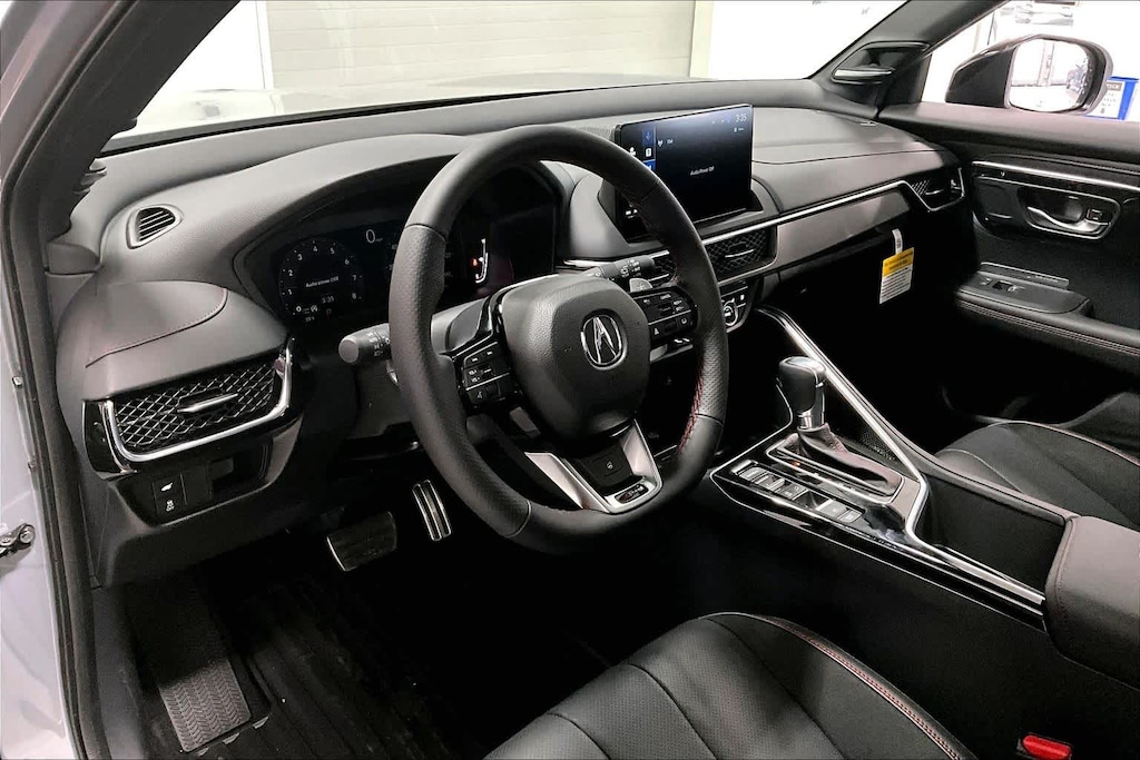 ADX A-Spec Advance Package is nicely equipped with 15 Speakers, 4-Wheel Disc Brakes, ABS brakes, Air Conditioning, Alloy wheels, AM/FM radio, Apple CarPlay/Android Auto, Auto High-beam Headlights, Auto-dimming Rear-View mirror, Automatic temperature control, Brake assist, Bumpers: body-color, Delay-off headlights, Driver door bin, Driver vanity mirror, Dual front impact airbags, Dual front side impact airbags, Electronic Stability Control, Emergency communication system: AcuraLink, Exterior Parking Camera Rear, Four wheel independent suspension, Front anti-roll bar, Front Bucket Seats, Front Center Armrest, Front dual zone A/C, Front fog lights, Front reading lights, Fully automatic headlights, Heated and Ventilated Front Bucket Seats, Heated door mirrors, Heated front seats, Heated steering wheel, Illuminated entry, Knee airbag, Lane departure: Lane Keeping Assist System (LKAS) active, Leather Shift Knob, Leather steering wheel, Leather Trimmed Seats, Low tire pressure warning, Memory seat, Navigation system: Google built-in (3-Years Unlimited Data Plan for In-Vehicle Apps), Occupant sensing airbag, Outside temperature display, Overhead airbag, Overhead console, Panic alarm, Passenger door bin, Passenger vanity mirror, Power door mirrors, Power driver seat, Power Liftgate, Power moonroof: Panoramic, Power passenger seat, Power steering, Power windows, Radio data system, Radio: Bang & Olufsen Premium Audio System, Rain sensing wipers, Rear anti-roll bar, Rear reading lights, Rear seat center armrest, Rear side impact airbag, Rear window defroster, Rear window wiper, Remote keyless entry, Security system, Speed control, Speed-sensing steering, Speed-Sensitive Wipers, Split folding rear seat, Spoiler, Sport steering wheel, Steering wheel mounted audio controls, Tachometer, Telescoping steering wheel, Tilt steering wheel, Traction control, Trip computer, Turn signal indicator mirrors, Variably intermittent wipers, Ventilated front seats, and Wheels: 19 x 8J Aluminum Alloy.