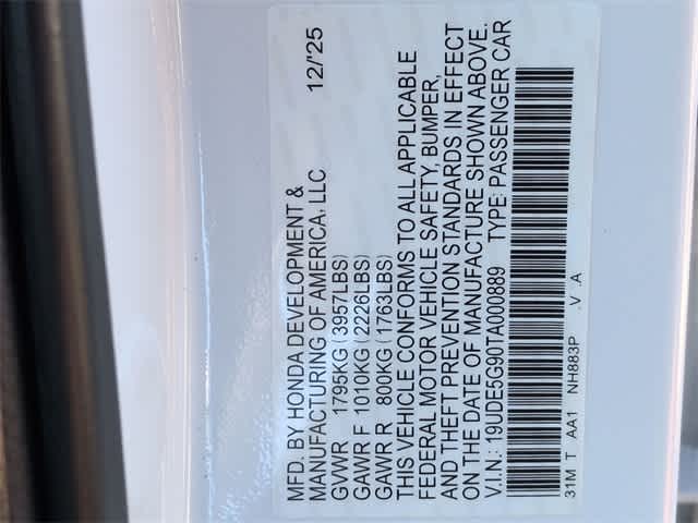 This 2026 Acura Integra Type S in Platinum White Pearl, features 16 Speakers, 19 Aluminum-Alloy Wheels, 4-Wheel Disc Brakes, ABS brakes, Adaptive suspension, Air Conditioning, Alloy wheels, AM/FM radio: SiriusXM, Apple CarPlay/Android Auto, Auto High-beam Headlights, Auto-dimming Rear-View mirror, Automatic temperature control, Brake assist, Bumpers: body-color, Compass, Delay-off headlights, Driver door bin, Driver vanity mirror, Dual front impact airbags, Dual front side impact airbags, Electronic Stability Control, Emergency communication system: AcuraLink (subscription required), Four wheel independent suspension, Front anti-roll bar, Front Bucket Seats, Front Center Armrest, Front dual zone A/C, Front reading lights, Fully automatic headlights, Heads-Up Display, Heated door mirrors, Heated Front Bucket Seats, Heated front seats, Illuminated entry, Knee airbag, Lane departure: Lane Keeping Assist System (LKAS) active, Leather Shift Knob, Leather steering wheel, Low tire pressure warning, Occupant sensing airbag, Outside temperature display, Overhead airbag, Overhead console, Panic alarm, Passenger door bin, Passenger vanity mirror, Perforated Ultrasuede-Trimmed Front Seats, Power door mirrors, Power driver seat, Power steering, Power windows, Radio data system, Radio: ELS Studio 3D Premium Audio System, Rain sensing wipers, Rear anti-roll bar, Rear side impact airbag, Rear window defroster, Remote keyless entry, Security system, Speed control, Speed-sensing steering, Speed-Sensitive Wipers, Split folding rear seat, Spoiler, Steering wheel mounted audio controls, Tachometer, Telescoping steering wheel, Tilt steering wheel, Traction control, Trip computer, Turn signal indicator mirrors, and Variably intermittent wipers: FWD