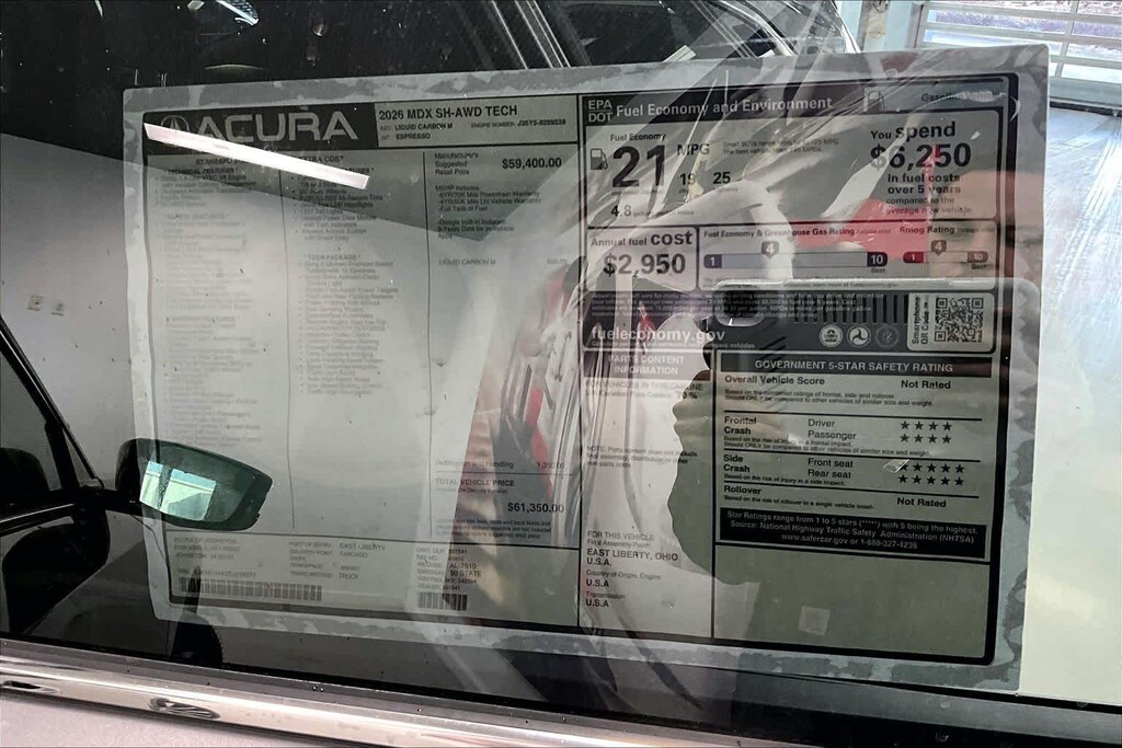 Liquid Carbon Metallic 2026 Acura MDX Technology Package SH-AWD AWD 10-Speed Automatic 3.5L V6 SOHC i-VTEC 24V Espresso Leather.