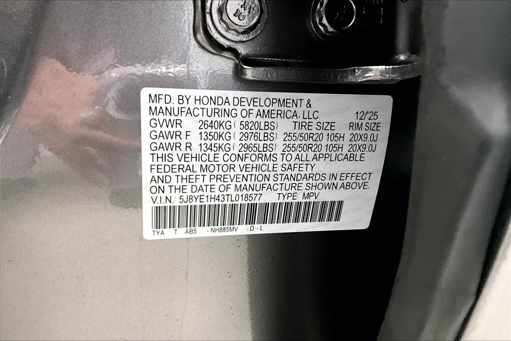 - Front tires: 255/50HR20.0