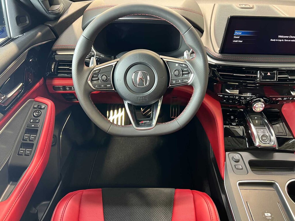 Leather Seats, Moonroof, Panoramic Roof, All Wheel Drive, Power Liftgate, Rear Air, Heated Driver Seat, Cooled Driver Seat, Back-Up Camera, Premium Sound System, iPod/MP3 Input, Onboard Communications System, Aluminum Wheels, Remote Engine Start, Dual Zone A/C. Acura w/A-Spec Package with Platinum White Pearl exterior and Red interior features a V6 Cylinder Engine with 290 HP at 6200 RPM*. Rear Spoiler, Third Row Seat, Navigation, MP3 Player, Privacy Glass.