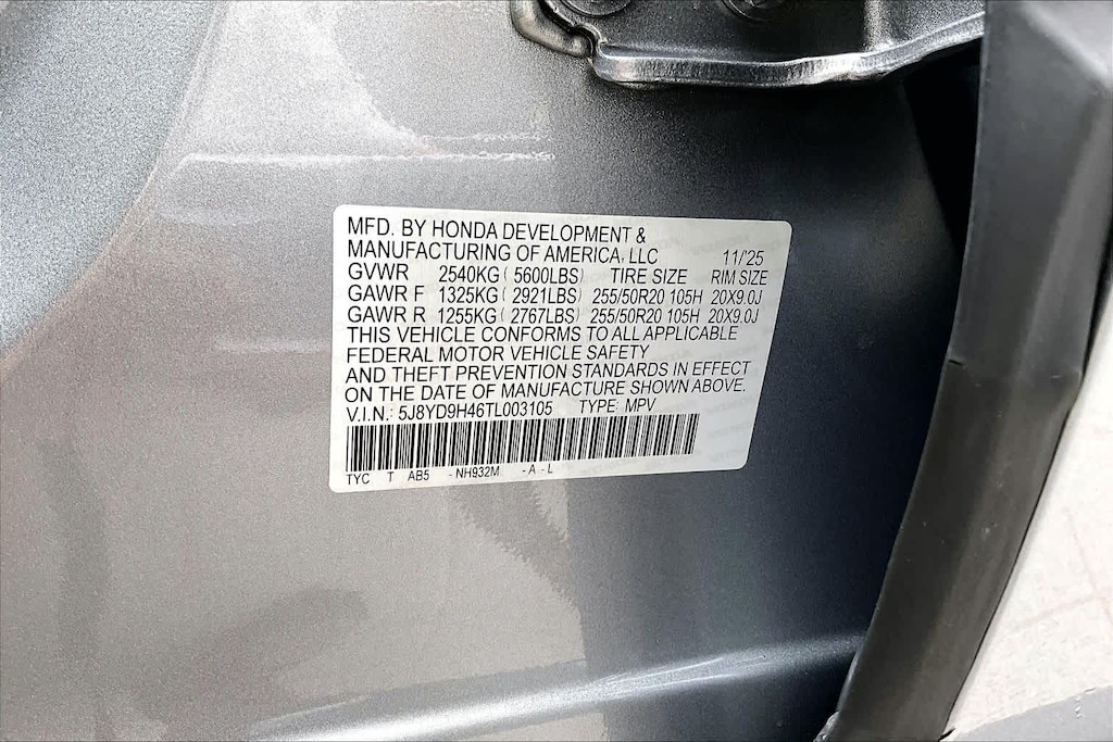 - Front tires: 255/50HR20.0