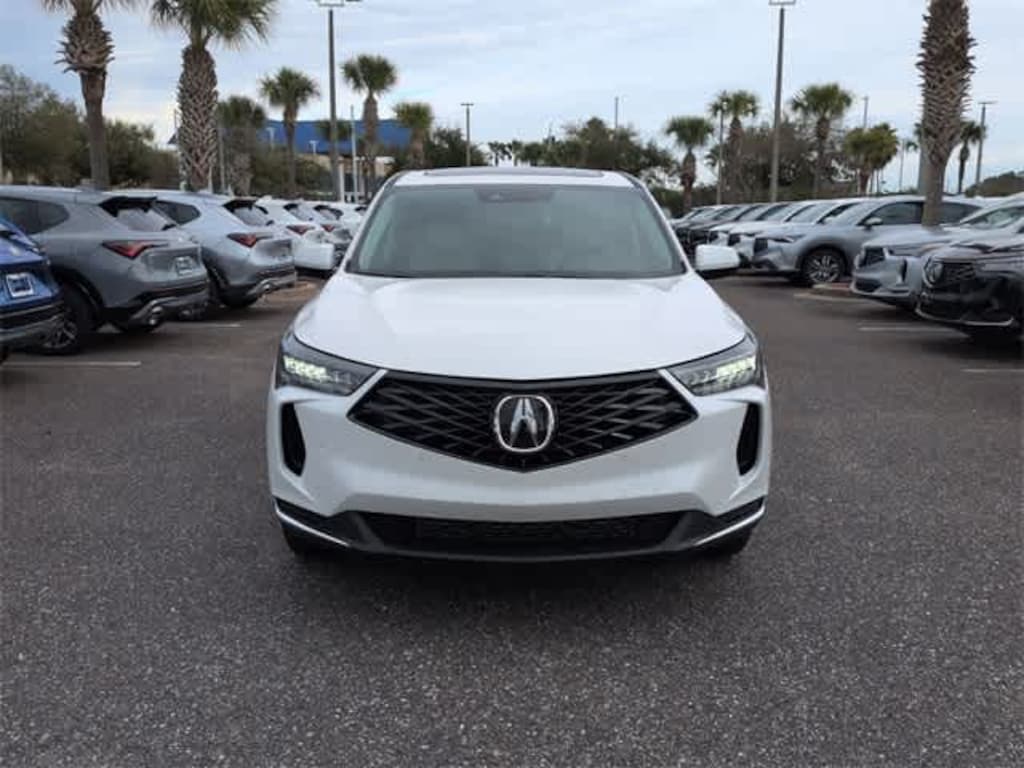 This 2026 Acura RDX Technology Package in Platinum White Pearl, features 12 Speakers, 4-Wheel Disc Brakes, ABS brakes, Air Conditioning, Alloy wheels, AM/FM radio: SiriusXM, Apple CarPlay/Android Auto, Auto High-beam Headlights, Auto-dimming Rear-View mirror, Automatic temperature control, Brake assist, Bumpers: body-color, Compass, Delay-off headlights, Driver door bin, Driver vanity mirror, Dual front impact airbags, Dual front side impact airbags, Electronic Stability Control, Emergency communication system: AcuraLink, Exterior Parking Camera Rear, Four wheel independent suspension, Front anti-roll bar, Front Bucket Seats, Front Center Armrest, Front dual zone A/C, Front reading lights, Fully automatic headlights, Garage door transmitter: HomeLink, Heated door mirrors, Heated front seats, Heated Front Sport Seats, Illuminated entry, Knee airbag, Lane departure: Lane Keeping Assist System (LKAS) active, Low tire pressure warning, Memory seat, Navigation system: Acura Navigation System with 3D View, Occupant sensing airbag, Outside temperature display, Overhead airbag, Overhead console, Panic alarm, Passenger door bin, Passenger vanity mirror, Perforated Milano Premium Leather-Trimmed Interior, Power door mirrors, Power driver seat, Power Liftgate, Power moonroof, Power passenger seat, Power steering, Power windows, Radio data system, Radio: ELS Studio Premium Audio System, Rear anti-roll bar, Rear reading lights, Rear seat center armrest, Rear window defroster, Rear window wiper, Remote keyless entry, Security system, Speed control, Speed-sensing steering, Split folding rear seat, Spoiler, Steering wheel mounted audio controls, Tachometer, Telescoping steering wheel, Tilt steering wheel, Traction control, Trip computer, Turn signal indicator mirrors, Variably intermittent wipers, and Wheels: 19 x 8.0J Shark Gray Machine-Finished: AWD