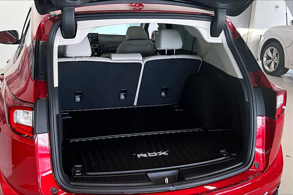 RDX Technology Package is nicely equipped with AWD, 12 Speakers, 4-Wheel Disc Brakes, ABS brakes, Air Conditioning, Alloy wheels, AM/FM radio: SiriusXM, Apple CarPlay/Android Auto, Auto High-beam Headlights, Auto-dimming Rear-View mirror, Automatic temperature control, Brake assist, Bumpers: body-color, Compass, Delay-off headlights, Driver door bin, Driver vanity mirror, Dual front impact airbags, Dual front side impact airbags, Electronic Stability Control, Emergency communication system: AcuraLink, Exterior Parking Camera Rear, Four wheel independent suspension, Front anti-roll bar, Front Bucket Seats, Front Center Armrest, Front dual zone A/C, Front reading lights, Fully automatic headlights, Garage door transmitter: HomeLink, Heated door mirrors, Heated front seats, Heated Front Sport Seats, Illuminated entry, Knee airbag, Lane departure: Lane Keeping Assist System (LKAS) active, Low tire pressure warning, Memory seat, Navigation system: Acura Navigation System with 3D View, Occupant sensing airbag, Outside temperature display, Overhead airbag, Overhead console, Panic alarm, Passenger door bin, Passenger vanity mirror, Perforated Milano Premium Leather-Trimmed Interior, Power door mirrors, Power driver seat, Power Liftgate, Power moonroof, Power passenger seat, Power steering, Power windows, Radio data system, Radio: ELS Studio Premium Audio System, Rear anti-roll bar, Rear reading lights, Rear seat center armrest, Rear window defroster, Rear window wiper, Remote keyless entry, Security system, Speed control, Speed-sensing steering, Split folding rear seat, Spoiler, Steering wheel mounted audio controls, Tachometer, Telescoping steering wheel, Tilt steering wheel, Traction control, Trip computer, Turn signal indicator mirrors, Variably intermittent wipers, and Wheels: 19 x 8.0J Shark Gray Machine-Finished.