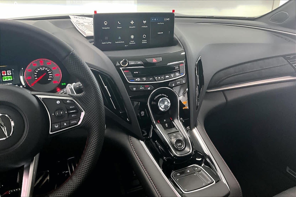 RDX A-Spec Advance Package is nicely equipped with AWD, 16 Speakers, 4-Wheel Disc Brakes, ABS brakes, Adaptive suspension, Air Conditioning, Alloy wheels, AM/FM radio: SiriusXM, Apple CarPlay/Android Auto, Auto High-beam Headlights, Auto-dimming Rear-View mirror, Automatic temperature control, Brake assist, Bumpers: body-color, Compass, Delay-off headlights, Driver door bin, Driver vanity mirror, Dual front impact airbags, Dual front side impact airbags, Electronic Stability Control, Emergency communication system: AcuraLink, Exterior Parking Camera Rear, Four wheel independent suspension, Front anti-roll bar, Front Bucket Seats, Front Center Armrest, Front dual zone A/C, Front fog lights, Front reading lights, Fully automatic headlights, Garage door transmitter: HomeLink, Heads-Up Display, Heated and Ventilated Front Sport Seats, Heated door mirrors, Heated front seats, Heated rear seats, Heated steering wheel, Illuminated entry, Knee airbag, Lane departure: Lane Keeping Assist System (LKAS) active, Low tire pressure warning, Memory seat, Navigation system: Acura Navigation System with 3D View, Occupant sensing airbag, Outside temperature display, Overhead airbag, Overhead console, Panic alarm, Passenger door bin, Passenger vanity mirror, Perforated Milano Premium Leather-Trimmed Interior, Power door mirrors, Power driver seat, Power Liftgate, Power moonroof, Power passenger seat, Power steering, Power windows, Radio data system, Radio: ELS Studio 3D Premium Audio System, Rain sensing wipers, Rear anti-roll bar, Rear reading lights, Rear seat center armrest, Rear window defroster, Rear window wiper, Remote keyless entry, Security system, Speed control, Speed-sensing steering, Split folding rear seat, Spoiler, Sport steering wheel, Steering wheel mounted audio controls, Tachometer, Telescoping steering wheel, Tilt steering wheel, Traction control, Trip computer, Turn signal indicator mirrors, Variably intermittent wipers, Ventilated front seats, and Wheels: 20 x 8.0J Berlina Black Machine-Finished.