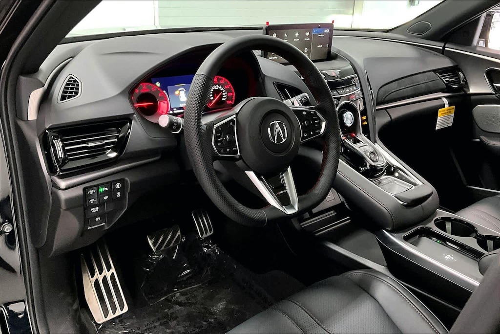 RDX A-Spec Advance Package is nicely equipped with AWD, 16 Speakers, 4-Wheel Disc Brakes, ABS brakes, Adaptive suspension, Air Conditioning, Alloy wheels, AM/FM radio: SiriusXM, Apple CarPlay/Android Auto, Auto High-beam Headlights, Auto-dimming Rear-View mirror, Automatic temperature control, Brake assist, Bumpers: body-color, Compass, Delay-off headlights, Driver door bin, Driver vanity mirror, Dual front impact airbags, Dual front side impact airbags, Electronic Stability Control, Emergency communication system: AcuraLink, Exterior Parking Camera Rear, Four wheel independent suspension, Front anti-roll bar, Front Bucket Seats, Front Center Armrest, Front dual zone A/C, Front fog lights, Front reading lights, Fully automatic headlights, Garage door transmitter: HomeLink, Heads-Up Display, Heated and Ventilated Front Sport Seats, Heated door mirrors, Heated front seats, Heated rear seats, Heated steering wheel, Illuminated entry, Knee airbag, Lane departure: Lane Keeping Assist System (LKAS) active, Leather steering wheel, Low tire pressure warning, Memory seat, Navigation system: Acura Navigation System with 3D View, Occupant sensing airbag, Outside temperature display, Overhead airbag, Overhead console, Panic alarm, Passenger door bin, Passenger vanity mirror, Perforated Milano Premium Leather-Trimmed Interior, Power door mirrors, Power driver seat, Power Liftgate, Power moonroof, Power passenger seat, Power steering, Power windows, Radio data system, Radio: ELS Studio 3D Premium Audio System, Rain sensing wipers, Rear anti-roll bar, Rear reading lights, Rear seat center armrest, Rear window defroster, Rear window wiper, Remote keyless entry, Security system, Speed control, Speed-sensing steering, Split folding rear seat, Spoiler, Sport steering wheel, Steering wheel mounted audio controls, Tachometer, Telescoping steering wheel, Tilt steering wheel, Traction control, Trip computer, Turn signal indicator mirrors, Variably intermittent wipers, Ventilated front seats, and Wheels: 20 x 8.0J Berlina Black Machine-Finished.
