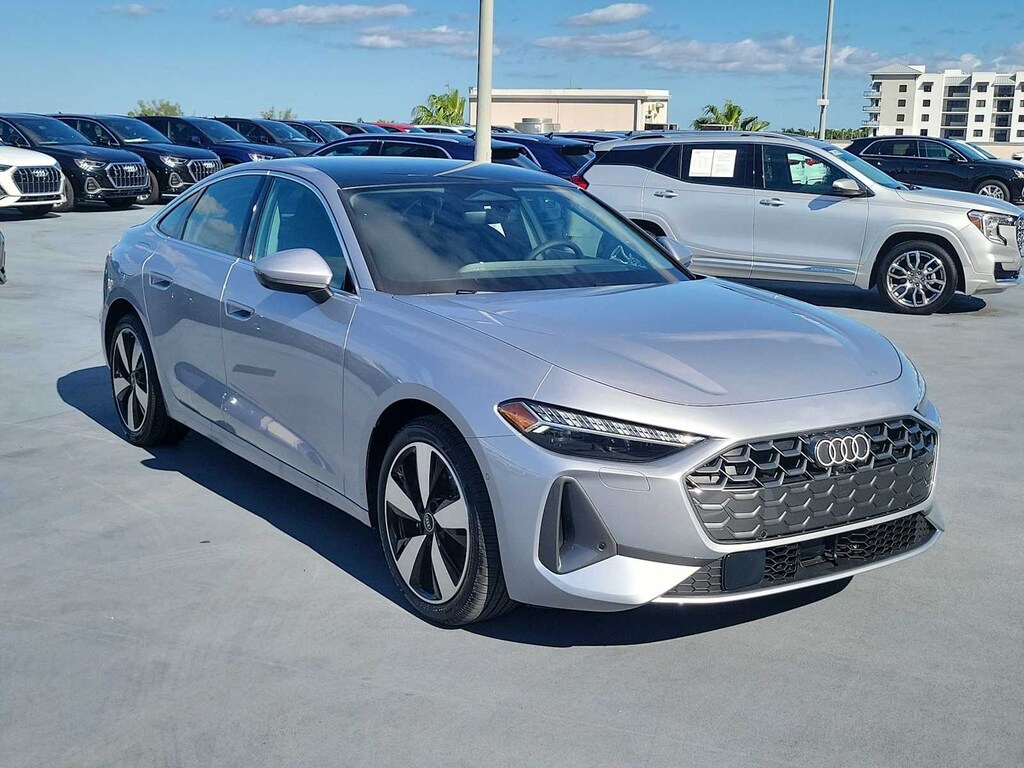 Florett Silver Metallic 2025 Audi A5 2.0L 4-Cylinder TFSI 7-Speed Automatic S tronic quattro quattro, Black Leather.