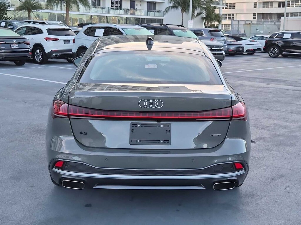 Gray 2025 Audi A5 2.0L 4-Cylinder TFSI 7-Speed Automatic S tronic quattro quattro, Black Leather.