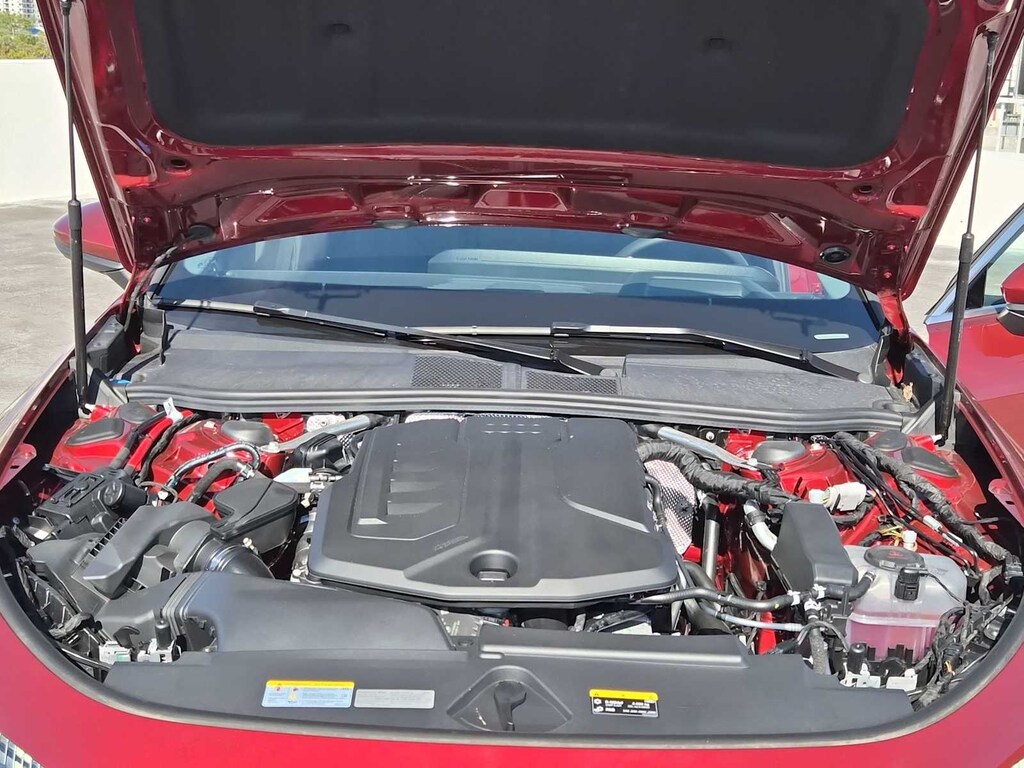 Red 2025 Audi A5 2.0L 4-Cylinder TFSI 7-Speed Automatic S tronic quattro quattro, Black Leather.