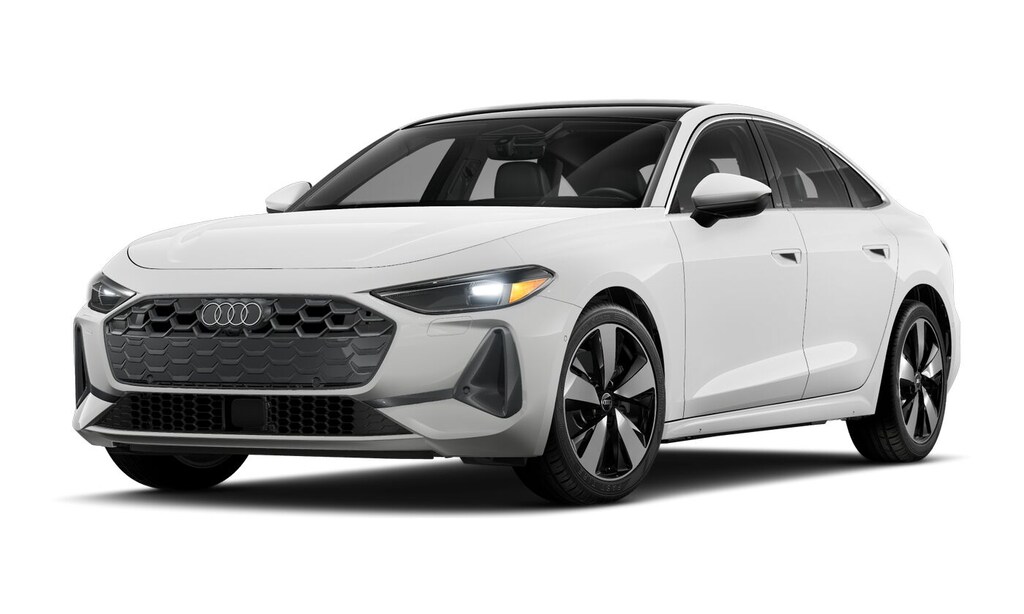 White 2025 Audi A5 2.0L 4-Cylinder TFSI 7-Speed Automatic S tronic quattro quattro, Black Leather.