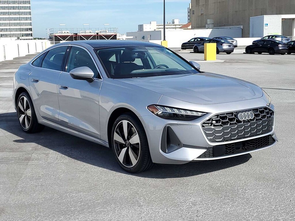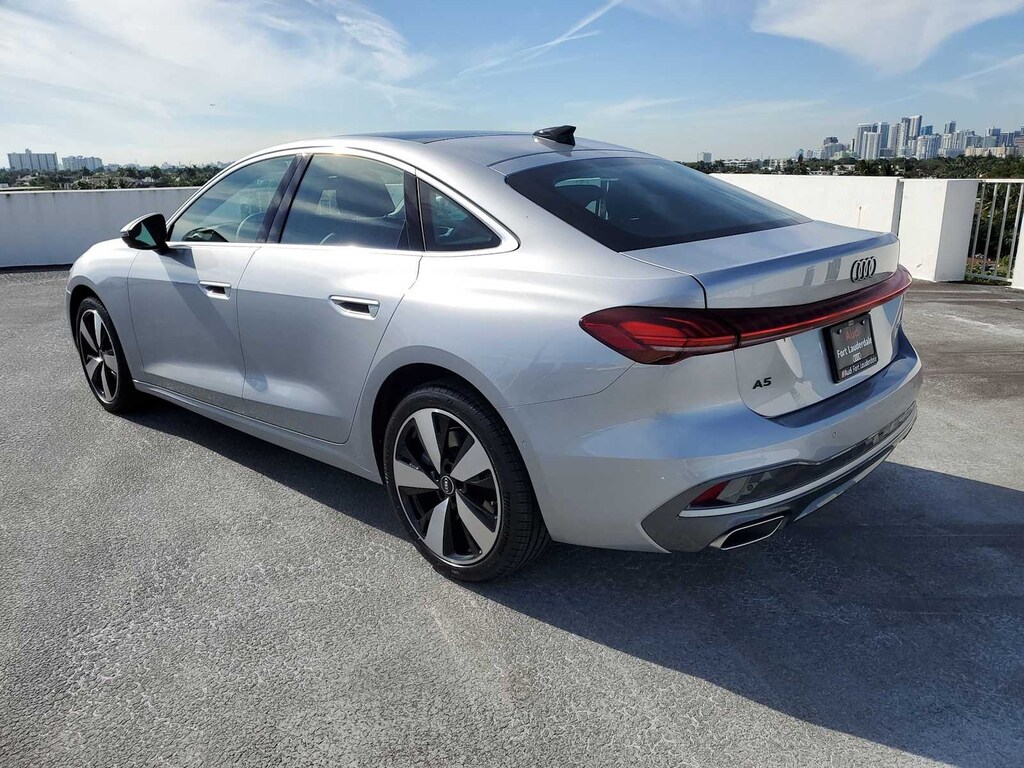 Florett Silver Metallic 2025 Audi A5 2.0L 4-Cylinder TFSI 7-Speed Automatic S tronic quattro quattro, Black Leather.