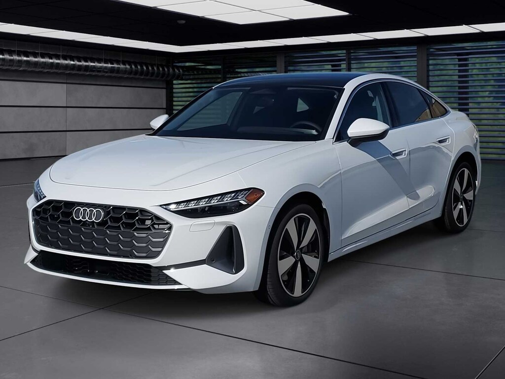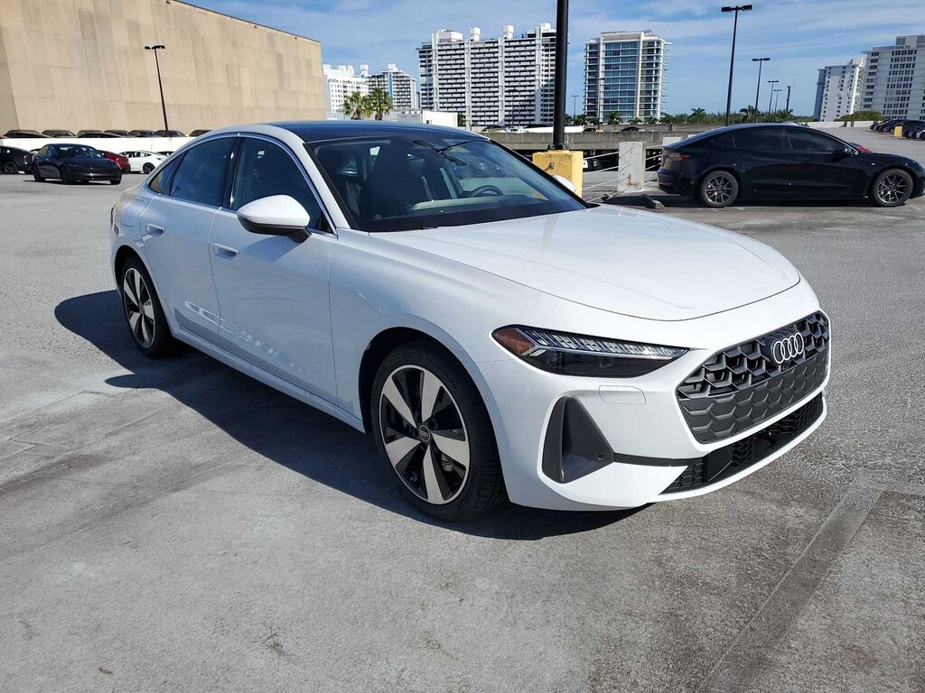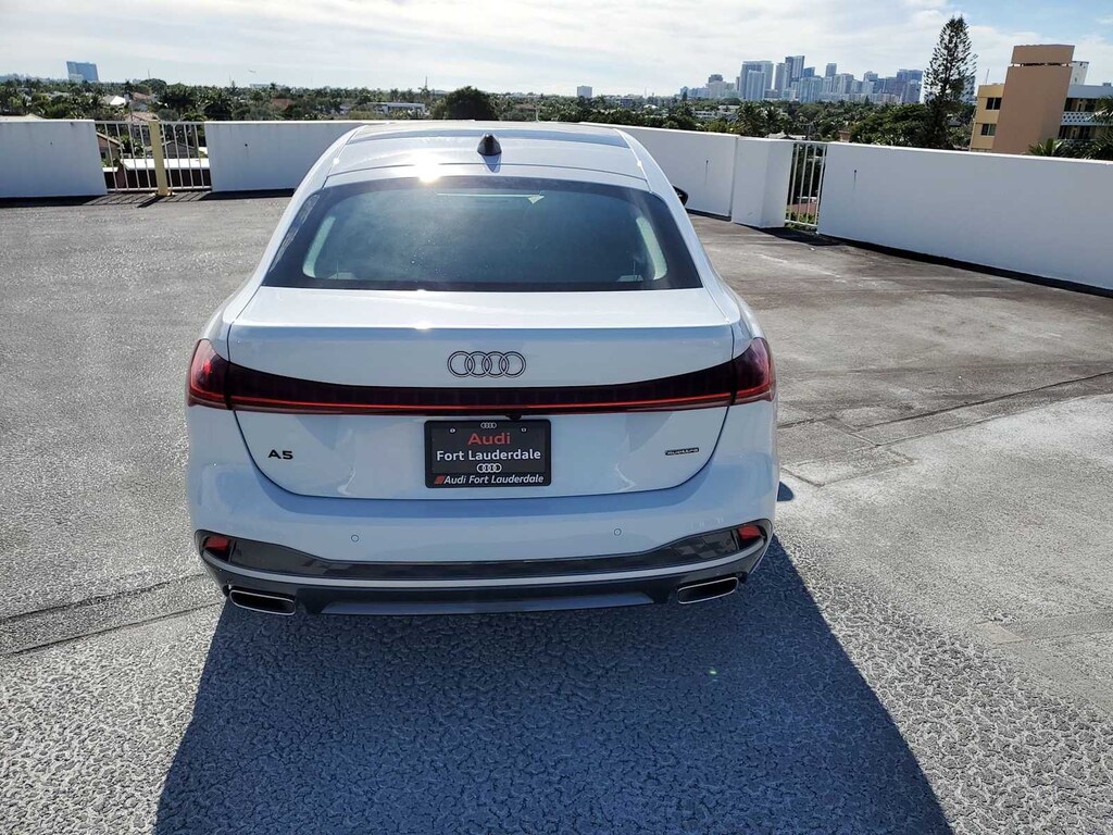 Glacier White Metallic 2025 Audi A5 2.0L 4-Cylinder TFSI 7-Speed Automatic S tronic quattro quattro, Black Leather.