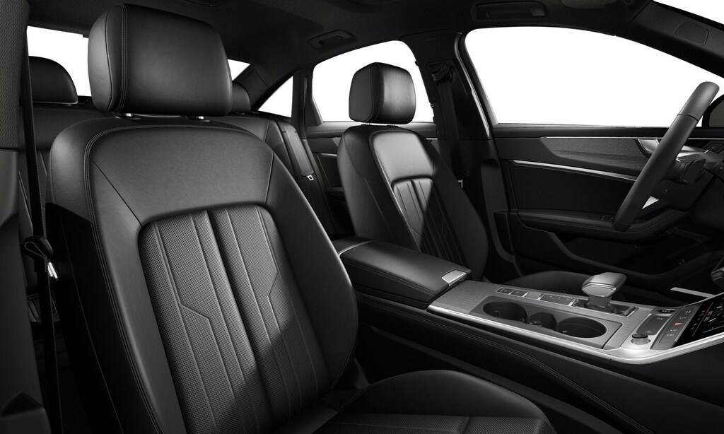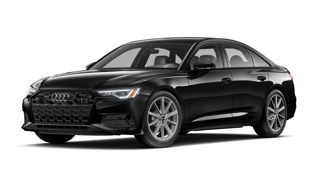 Mythos Black Metallic 2025 Audi A6 45 Premium Plus 2.0L 4-Cylinder TFSI 7-Speed Automatic quattro quattro, Black Leather.