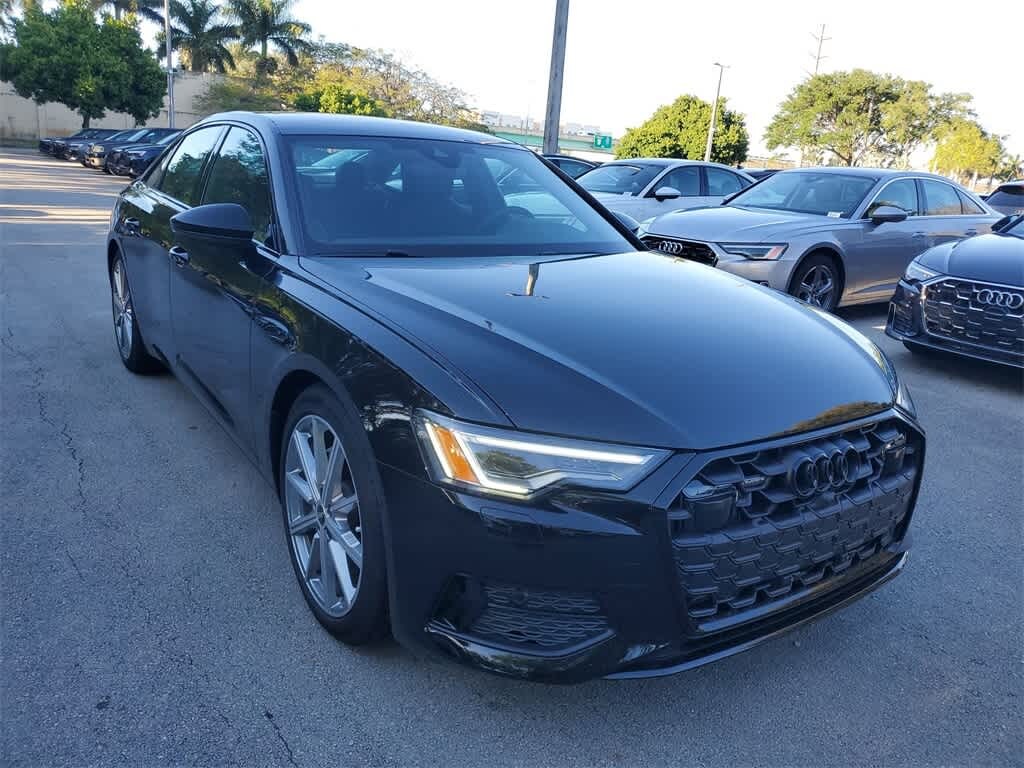 Mythos Black Metallic 2025 Audi A6 45 Premium Plus 2.0L 4-Cylinder TFSI 7-Speed Automatic quattro quattro, Black Leather.