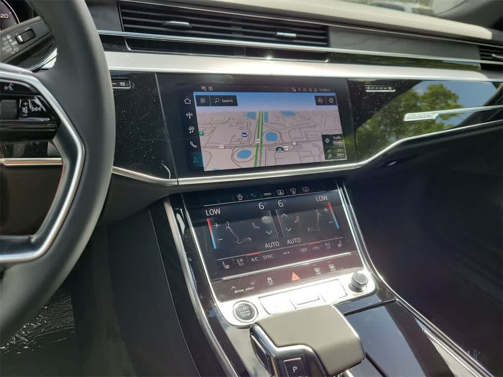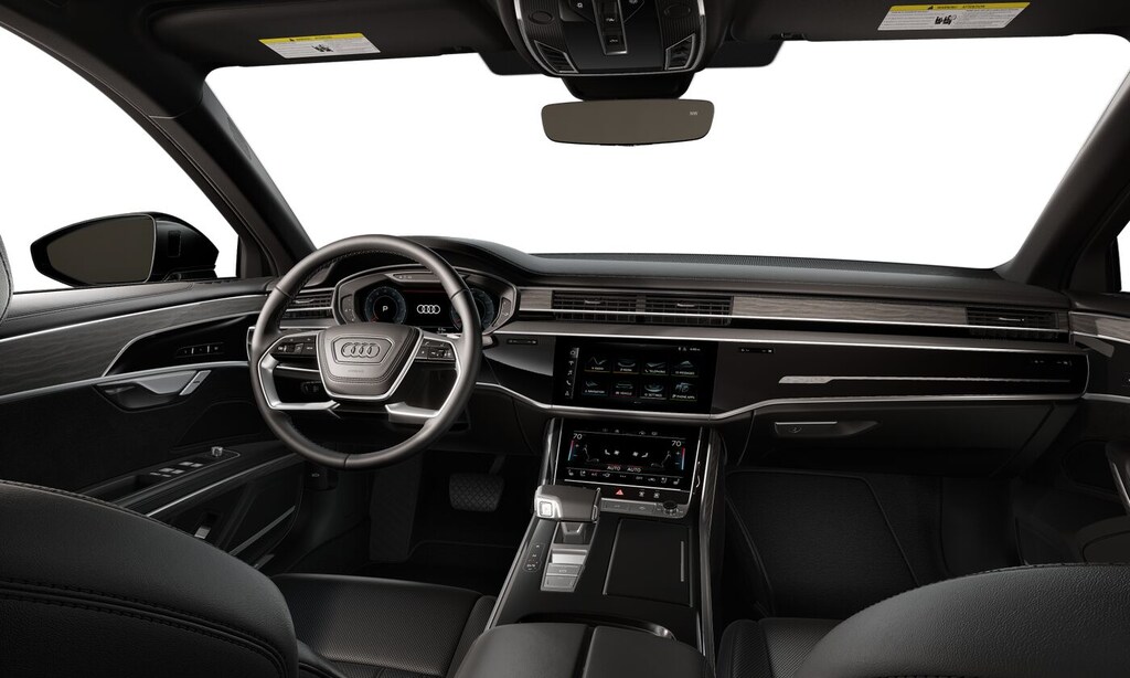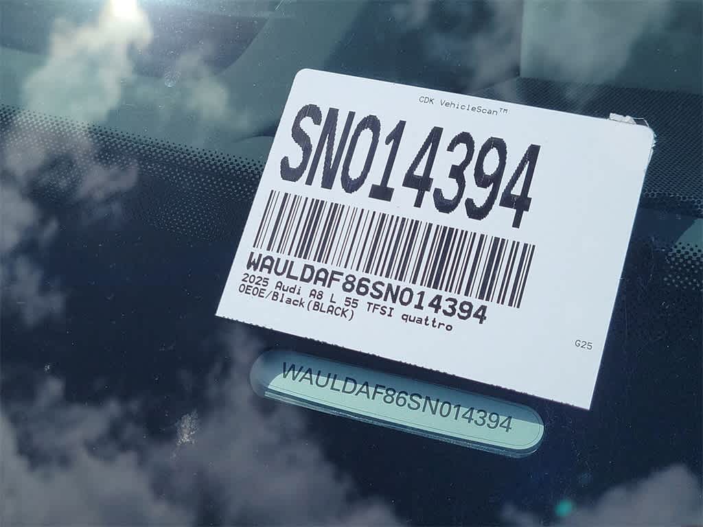 Mythos Black Metallic 2025 Audi A8 L 55 3.0L V6 Turbocharged DOHC 24V LEV3-ULEV70 335hp 8-Speed Automatic with Tiptronic quattro Black Leather.