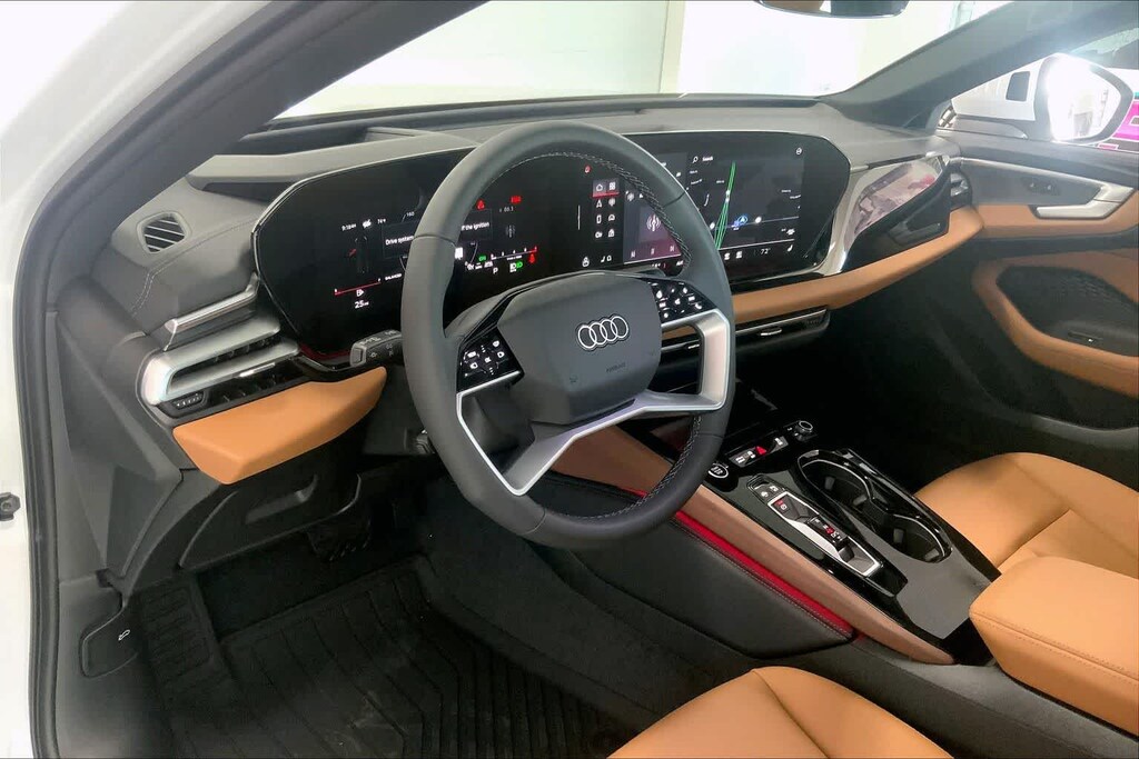 Glacier White Metallic 2025 Audi A5 quattro quattro 7-Speed Automatic S tronic 2.0L 4-Cylinder TFSI quattro, Brown Leather.
