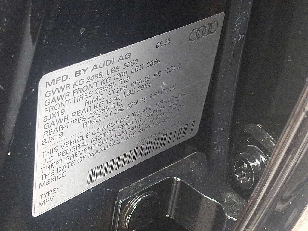 PANORAMIC SUNROOF, 19 WHEEL PACKAGE Tires: 235/55R19 105H XL AS Run Flat, Wheels: 19 5-Double-Spoke Design, CONVENIENCE PACKAGE Heated Steering Wheel, Top View Camera System, AUDI GUARD PROTECTION KIT all-weather floor mats and cargo mat, PRIVACY TRUNK COVER. Rear Spoiler, MP3 Player, Keyless Entry, Privacy Glass, Remote Trunk Release.