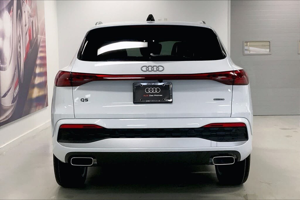 Q5 2.0T Premium Plus is nicely equipped with Ii/Beige Leather, 10 Speakers, 4-Wheel Disc Brakes, ABS brakes, Air Conditioning, Alloy wheels, AM/FM radio: SiriusXM w/360L, Auto High-beam Headlights, Auto tilt-away steering wheel, Auto-dimming door mirrors, Auto-dimming Rear-View mirror, Automatic temperature control, Brake assist, Bumpers: body-color, Compass, Delay-off headlights, Driver door bin, Driver vanity mirror, Dual front impact airbags, Dual front side impact airbags, Electronic Stability Control, Emergency communication system: Audi connect CARE, Exterior Parking Camera Rear, Four wheel independent suspension, Front anti-roll bar, Front Bucket Seats, Front Center Armrest, Front dual zone A/C, Front fog lights, Front reading lights, Garage door transmitter: HomeLink, Genuine wood console insert, Genuine wood dashboard insert, Genuine wood door panel insert, Heated door mirrors, Heated Front Bucket Seats, Heated front seats, Illuminated entry, Leather Seating Surfaces, Leather steering wheel, Low tire pressure warning, Memory seat, Navigation system: Audi Navigation Plus, Occupant sensing airbag, Outside temperature display, Overhead airbag, Overhead console, Panic alarm, Passenger door bin, Passenger vanity mirror, Power door mirrors, Power driver seat, Power Liftgate, Power passenger seat, Power steering, Power windows, Radio data system, Radio: MMI Navigation Plus, Rain sensing wipers, Rear air conditioning, Rear anti-roll bar, Rear fog lights, Rear reading lights, Rear seat center armrest, Rear window defroster, Rear window wiper, Remote keyless entry, Roof rack, Security system, Speed control, Speed-sensing steering, Speed-Sensitive Wipers, Split folding rear seat, Spoiler, Steering wheel mounted audio controls, Tachometer, Telescoping steering wheel, Tilt steering wheel, Traction control, Trip computer, Turn signal indicator mirrors, Variably intermittent wipers, and Wheels: 18 5-Arm-Twist Design. Price includes: $2500 - Audi Credit. Exp. 03/02/2026