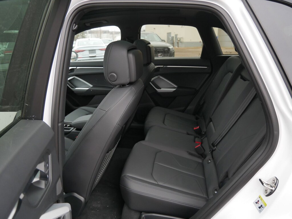 The Audi Q3 Premium S Line quattro is meticulously equipped to elevate your driving experience. Enjoy the convenience of a Panoramic Power Moonroof, a Power Liftgate, and a suite of advanced safety features, including Audi connect CARE emergency communication system, Rear Parking Camera, and a comprehensive airbag system. The Audi smartphone interface with Apple CarPlay and Android Auto seamlessly integrates your mobile devices, while the Audi Sound System provides a premium audio experience.
