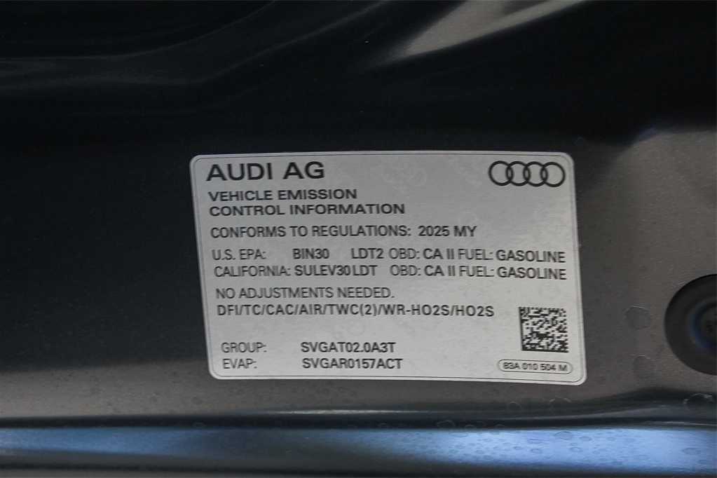 PREMIUM PLUS PACKAGE SONOS Premium Sound System w/3D Sound, Convenience Package, Auto-Dimming Power-Folding Exterior Mirrors, memory, Wireless Phone Charging Pad, Garage Door Opener (HomeLink), Via rearview mirror, LED Interior Lighting Package, Alarm w/Motion Sensor, SiriusXM w/360L (3 Months Trial), Driver Seat Memory, Auto-Dimming Rearview Mirror, Audi Advanced Key, hands-free power tailgate, LED Interior Lighting Plus Package, Top View Camera System, BLACK OPTIC PLUS PACKAGE Tires: 255/45R19 104V XL All-Season, Carbon Inlays, Black Exterior Mirrors, Sport Front Bucket Seats w/S Embossing, Audi sport stitching, Dinamica Upper Inlay & Door Armrests in Steel Gray, Black Exterior Trim & Badges, Wheels: 19 7-Spoke-Rotor-Design, anthracite black finish, Stainless Steel Pedal Caps, Black Roof Rails. Rear Spoiler, MP3 Player, Sunroof, All Wheel Drive, Onboard Communications System, Chrome Wheels, Privacy Glass.