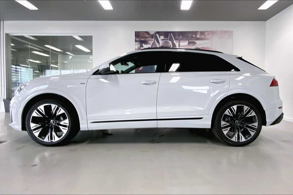 Q8 55 Premium Plus is nicely equipped with 10 Speakers, 4-Wheel Disc Brakes, ABS brakes, Adaptive suspension, Air Conditioning, Alloy wheels, AM/FM radio: SiriusXM w/360L, Auto High-beam Headlights, Auto-dimming door mirrors, Auto-dimming Rear-View mirror, Automatic temperature control, Brake assist, Bumpers: body-color, Compass, Delay-off headlights, Driver door bin, Driver vanity mirror, Dual front impact airbags, Dual front side impact airbags, Electronic Stability Control, Emergency communication system: Audi connect CARE, Exterior Parking Camera Rear, Four wheel independent suspension, Front anti-roll bar, Front Bucket Seats, Front Center Armrest, Front dual zone A/C, Front fog lights, Front reading lights, Fully automatic headlights, Garage door transmitter: HomeLink, Genuine wood door panel insert, Headlight cleaning, Heated door mirrors, Heated Front Bucket Seats, Heated front seats, Illuminated entry, Leather Seating Surfaces, Leather Shift Knob, Leather steering wheel, Low tire pressure warning, Memory seat, Navigation system: Audi MMI Navigation with Touch Response, Occupant sensing airbag, Outside temperature display, Overhead airbag, Overhead console, Panic alarm, Passenger door bin, Passenger vanity mirror, Power door mirrors, Power driver seat, Power Liftgate, Power moonroof: Panoramic, Power passenger seat, Power steering, Power windows, Radio data system, Radio: Audi MMI Navigation Plus with MMI Touch Response, Rain sensing wipers, Rear air conditioning, Rear anti-roll bar, Rear fog lights, Rear reading lights, Rear seat center armrest, Rear side impact airbag, Rear window defroster, Rear window wiper, Remote keyless entry, Security system, Speed control, Speed-sensing steering, Split folding rear seat, Spoiler, Steering wheel memory, Steering wheel mounted audio controls, Tachometer, Telescoping steering wheel, Tilt steering wheel, Traction control, Trip computer, Turn signal indicator mirrors, Variably intermittent wipers, and Wheels: 21 5-W-Spoke-Design Bicolor Finish. Price includes: $5000 - Season of Audi Customer Credit. Exp. 12/01/2025