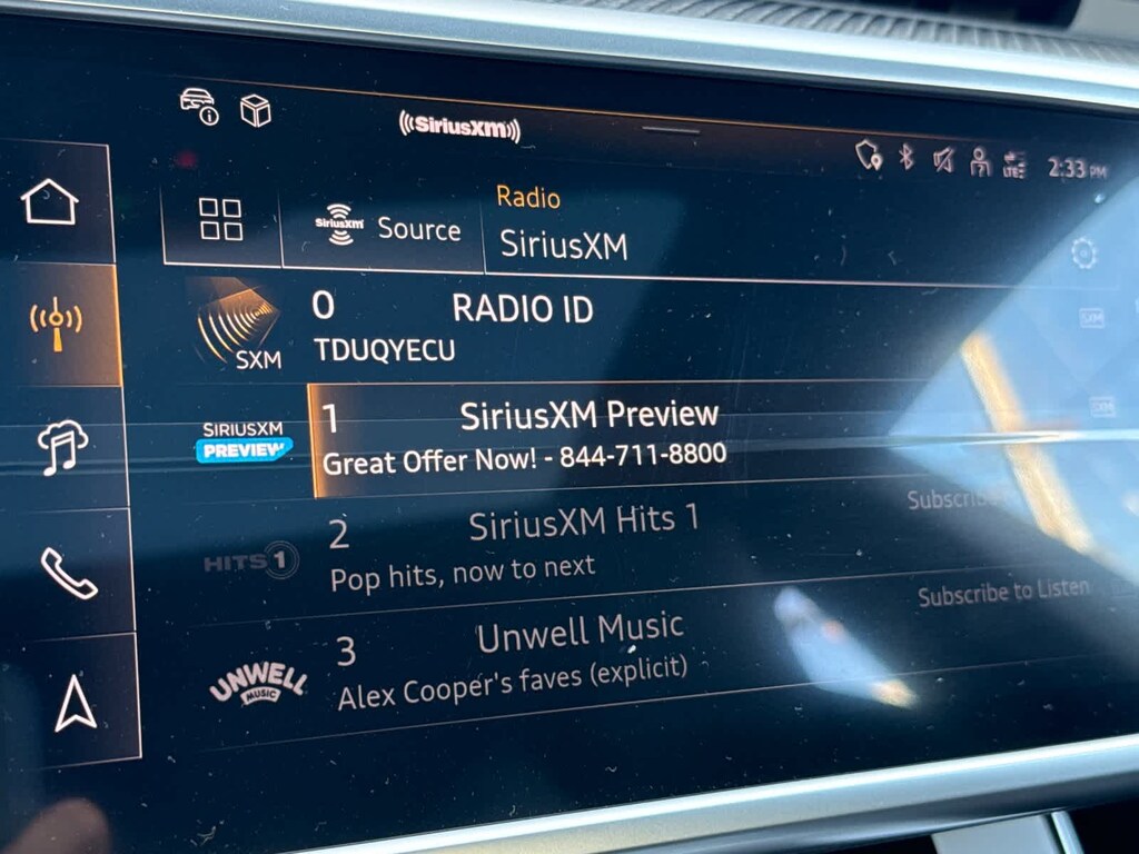 - Satellite radio trial duration with new vehicle purchase (months): 3