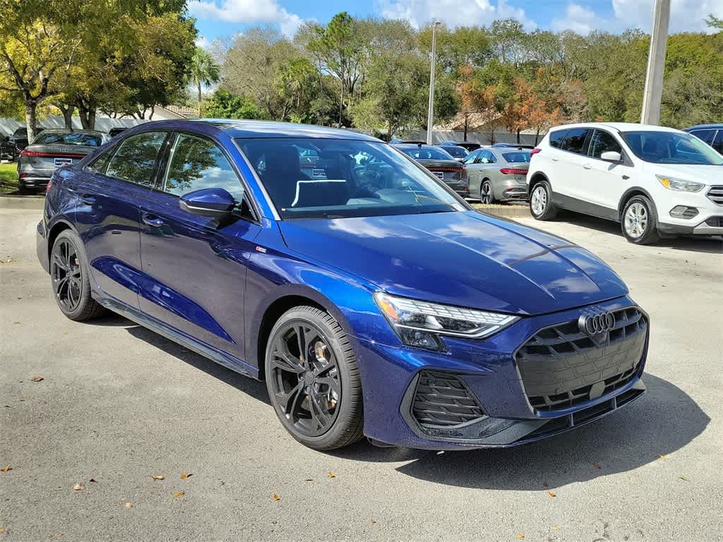 Navarra Blue Metallic 2026 Audi A3 2.0L 4-Cylinder TFSI 7-Speed Automatic S tronic quattro quattro, Black Leather.