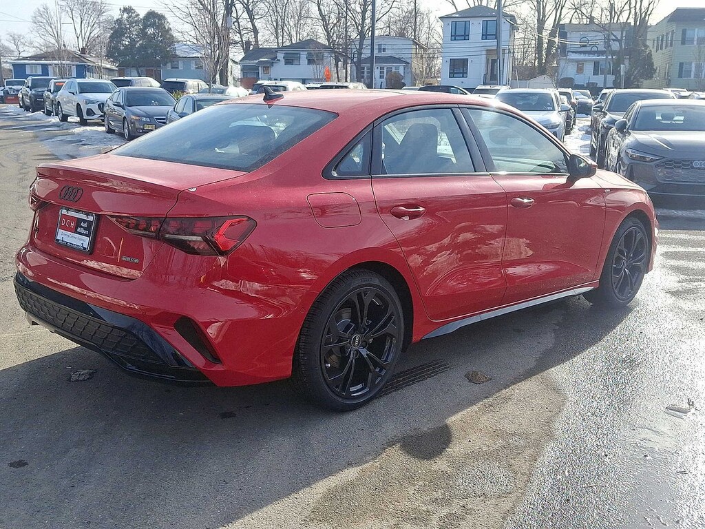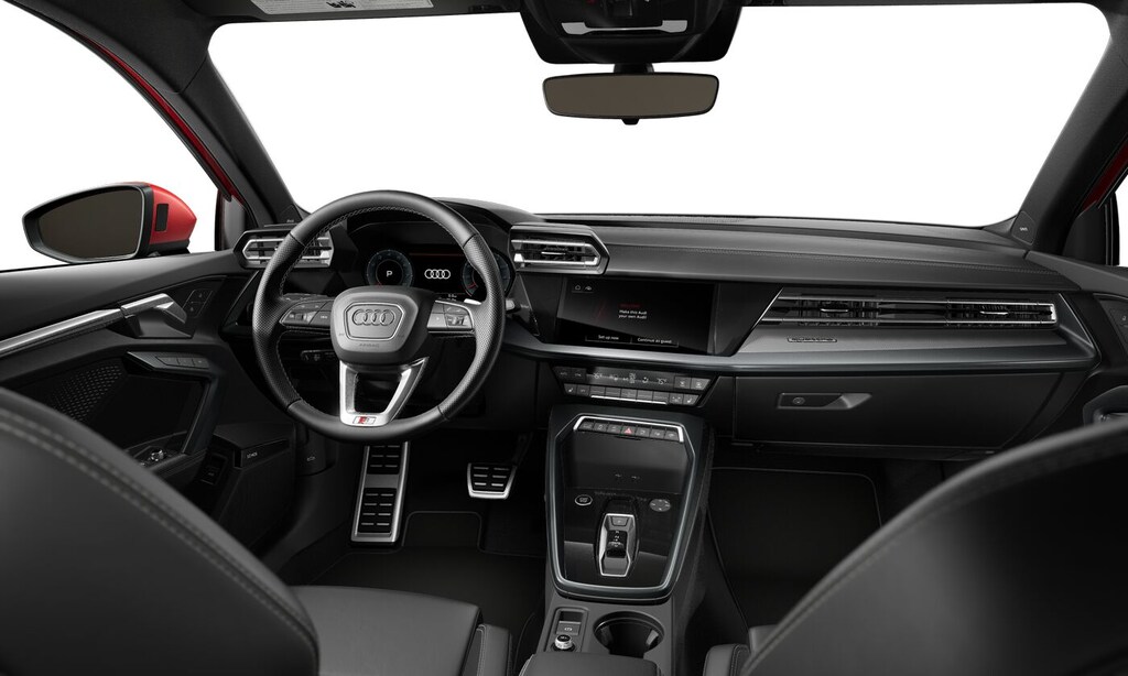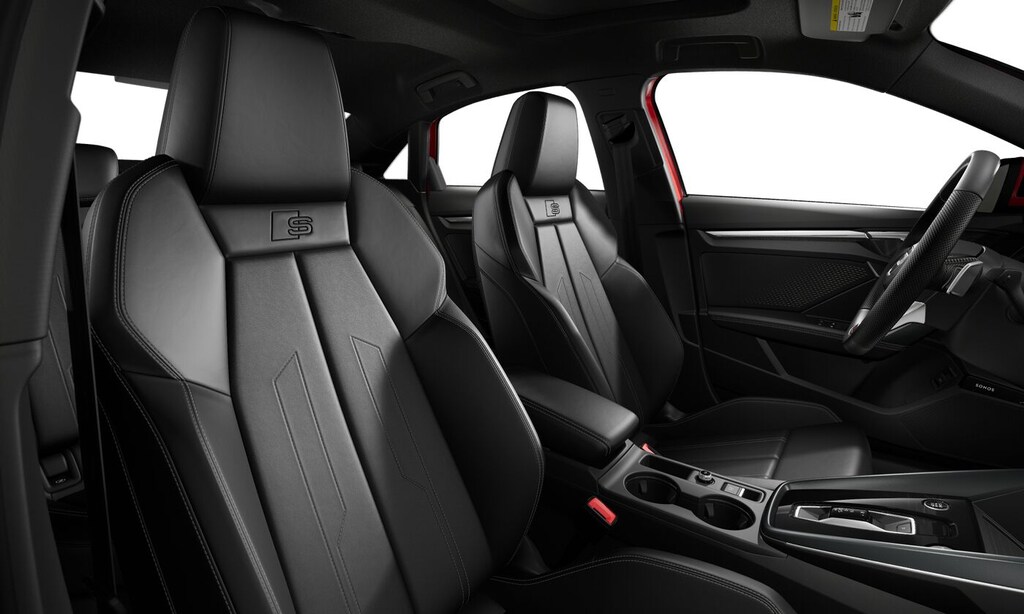 PREMIUM PLUS PACKAGE SONOS Premium Sound System w/3D Sound, Top View Camera, Hands-On Detection for Steering Wheel, LED Interior Lighting Pro Package, Adaptive Cruise Assist w/Lane Guidance, Auto-Dimming Interior Mirror w/Compass & HomeLink, Memory for Drivers Seat, SiriusXM w/360L, 3-month trial, Audi Advanced Key, Wireless Phone Charging Pad, Park Assist Plus, S LINE PLUS PACKAGE aluminum spectrum dark inlay, black headliner, S line exterior and S line interior package, Sport Front Seats, Black Exterior Trim, Sport Suspension (-15 mm), Anthracite Audi Rings, Black Wheel Center Caps, 18 5-Y-Double-Spoke Design Wheels w/Black Metallic Finish, 225/40R18 92H XL All-Season Tires, AUDI GUARD ALL-WEATHER MATS front and rear set of black rubber mats (4), Front set features A3 logo. MP3 Player, Steering Wheel Controls, Child Safety Locks, Heated Mirrors, Electronic Stability Control.