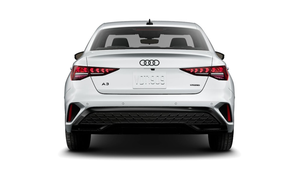 A3 is nicely equipped with quattro, Black Leather, 10 Speakers, 190 Watt 10 Speaker Audi Sound System, 4-Wheel Disc Brakes, ABS brakes, Air Conditioning, Alloy wheels, AM/FM radio, Audi Connect CARE, Audi Connect NAV and PLUS, Auto High-beam Headlights, Automatic temperature control, Brake assist, Bumpers: body-color, Delay-off headlights, Driver door bin, Driver vanity mirror, Dual front impact airbags, Dual front side impact airbags, Electronic Stability Control, Emergency communication system: Audi connect CARE, Exterior Parking Camera Rear, Four wheel independent suspension, Front anti-roll bar, Front Bucket Seats, Front Center Armrest, Front dual zone A/C, Front reading lights, Fully automatic headlights, Genuine wood dashboard insert, Heated door mirrors, Heated Front Bucket Seats, Heated front seats, Illuminated entry, Knee airbag, Leather Seating Surfaces, Leather steering wheel, Low tire pressure warning, Navigation system: Audi MMI Navigation with Touch Response, Occupant sensing airbag, Outside temperature display, Overhead airbag, Overhead console, Panic alarm, Passenger door bin, Passenger vanity mirror, Power door mirrors, Power driver seat, Power moonroof, Power passenger seat, Power steering, Power windows, Radio data system, Radio: MMI Touch Display with 10.1 Touchscreen, Rain sensing wipers, Rear air conditioning, Rear anti-roll bar, Rear fog lights, Rear reading lights, Rear seat center armrest, Rear side impact airbag, Rear window defroster, Remote keyless entry, Security system, Speed control, Speed-sensing steering, Speed-Sensitive Wipers, Split folding rear seat, Steering wheel mounted audio controls, Tachometer, Telescoping steering wheel, Tilt steering wheel, Traction control, Trip computer, Turn signal indicator mirrors, Variably intermittent wipers, and Wheels: 17 5-V-Spoke Design.