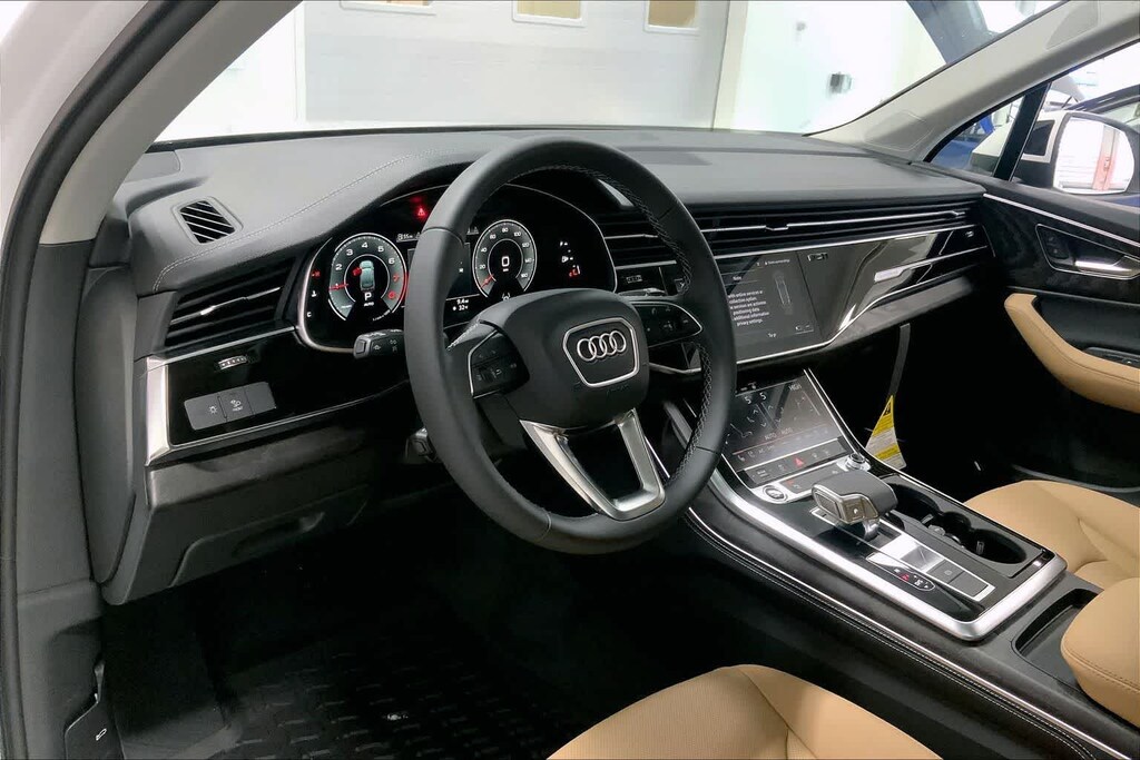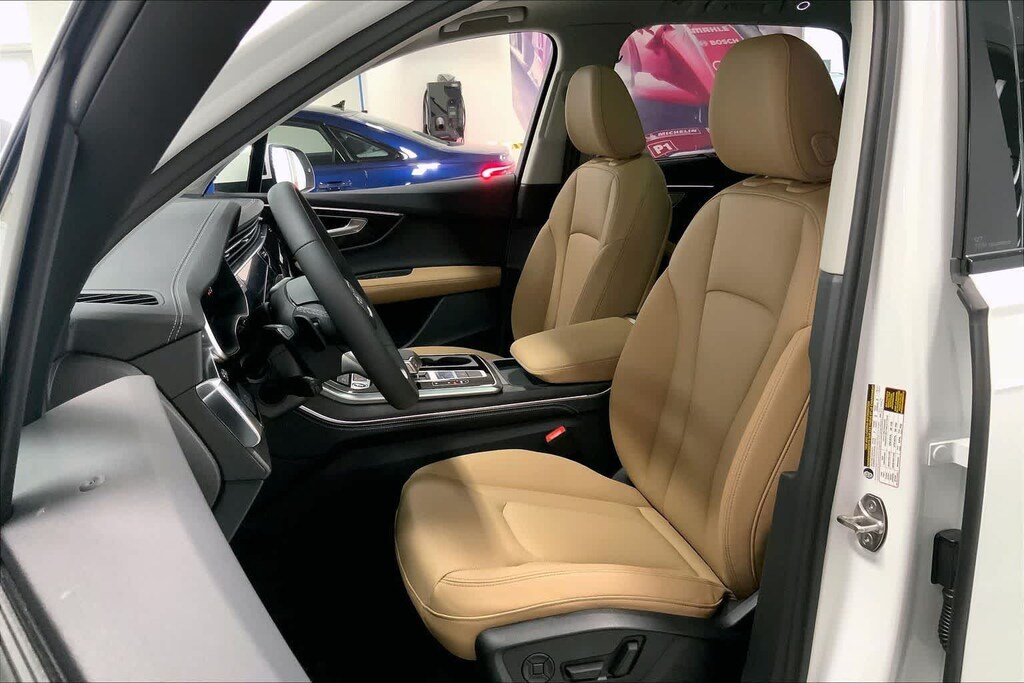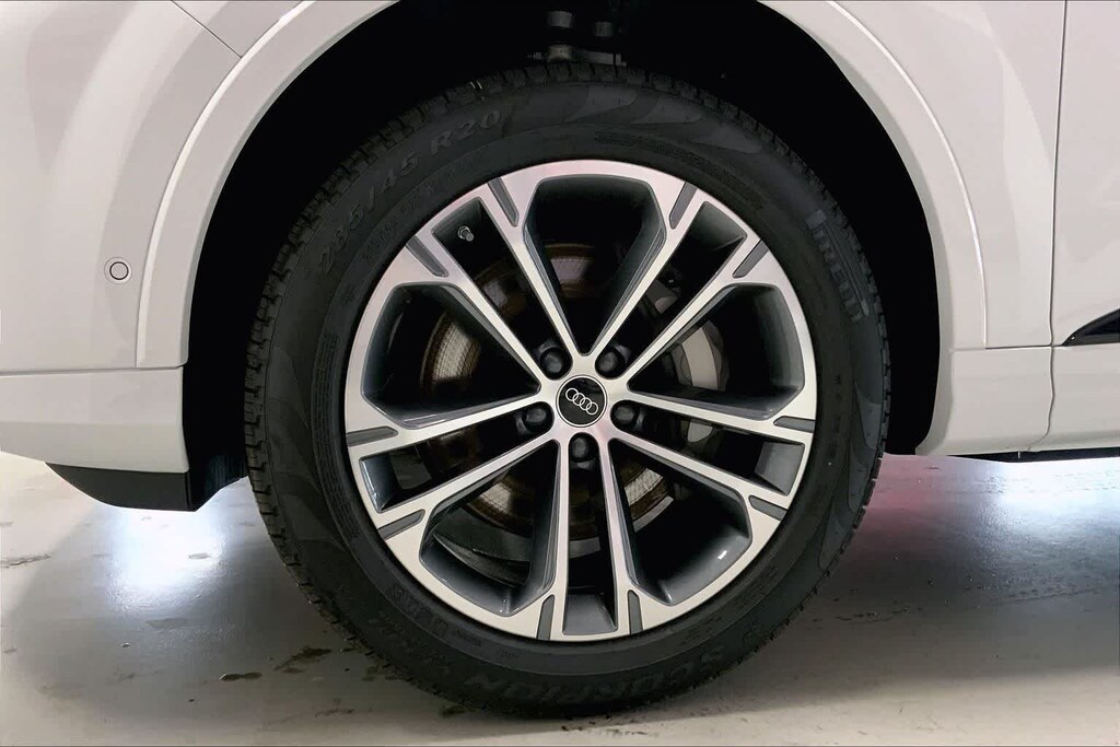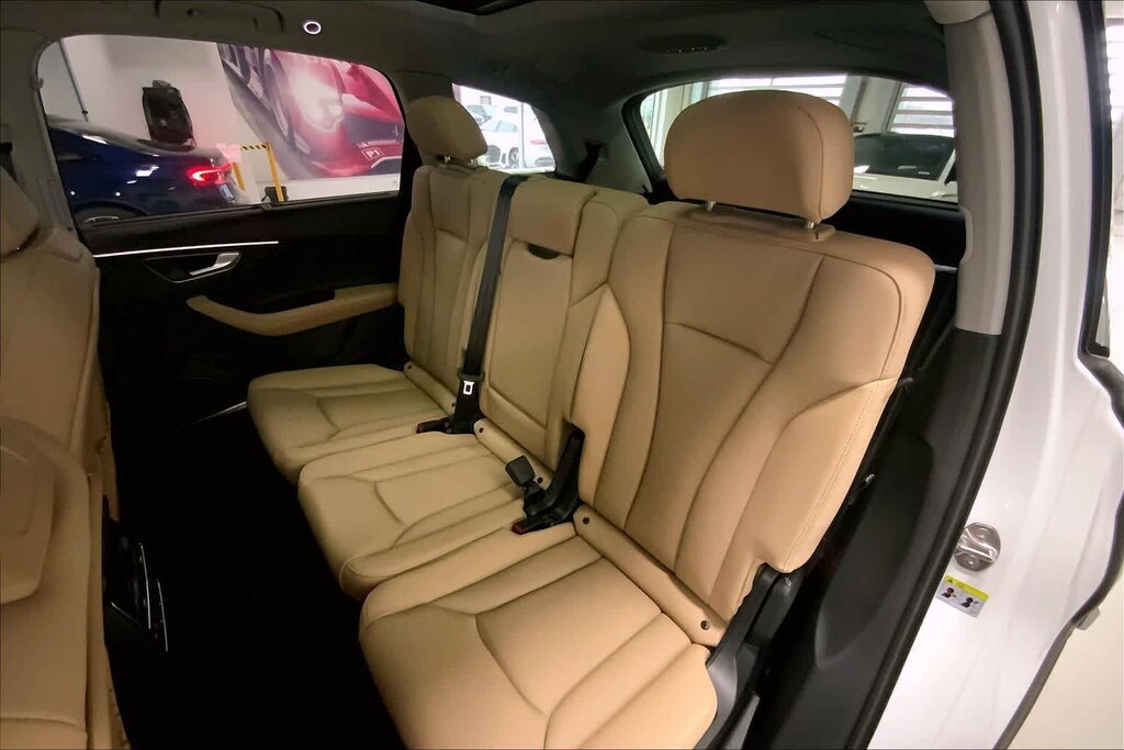 Q7 45 Premium Plus is nicely equipped with 10 Speakers, 3rd row seats: bench, 4-Wheel Disc Brakes, ABS brakes, Air Conditioning, Alloy wheels, AM/FM radio, Auto High-beam Headlights, Auto-dimming door mirrors, Auto-dimming Rear-View mirror, Automatic temperature control, Brake assist, Bumpers: body-color, Compass, Delay-off headlights, Driver door bin, Driver vanity mirror, Dual front impact airbags, Dual front side impact airbags, Electronic Stability Control, Emergency communication system: Audi connect CARE, Exterior Parking Camera Rear, Four wheel independent suspension, Front anti-roll bar, Front Bucket Seats, Front Center Armrest, Front dual zone A/C, Front fog lights, Front reading lights, Fully automatic headlights, Garage door transmitter: HomeLink, Genuine wood door panel insert, Heated door mirrors, Heated Front Bucket Seats, Heated front seats, Illuminated entry, Leather Seating Surfaces, Leather Shift Knob, Leather steering wheel, Low tire pressure warning, Memory seat, Navigation system: Audi MMI Navigation plus with Touch Response, Occupant sensing airbag, Outside temperature display, Overhead airbag, Overhead console, Panic alarm, Passenger door bin, Passenger vanity mirror, Power door mirrors, Power driver seat, Power Liftgate, Power moonroof: Panoramic, Power passenger seat, Power steering, Power windows, Radio data system, Radio: Audi Sound System, Rain sensing wipers, Rear air conditioning, Rear anti-roll bar, Rear fog lights, Rear reading lights, Rear seat center armrest, Rear side impact airbag, Rear window defroster, Rear window wiper, Reclining 3rd row seat, Remote keyless entry, Security system, Speed control, Speed-sensing steering, Split folding rear seat, Spoiler, Steering wheel memory, Steering wheel mounted audio controls, Tachometer, Telescoping steering wheel, Tilt steering wheel, Traction control, Trip computer, Turn signal indicator mirrors, Variably intermittent wipers, and Wheels: 19 5-Arm-Star Design. Price includes: $3000 - National Customer Credit. Exp. 03/02/2026