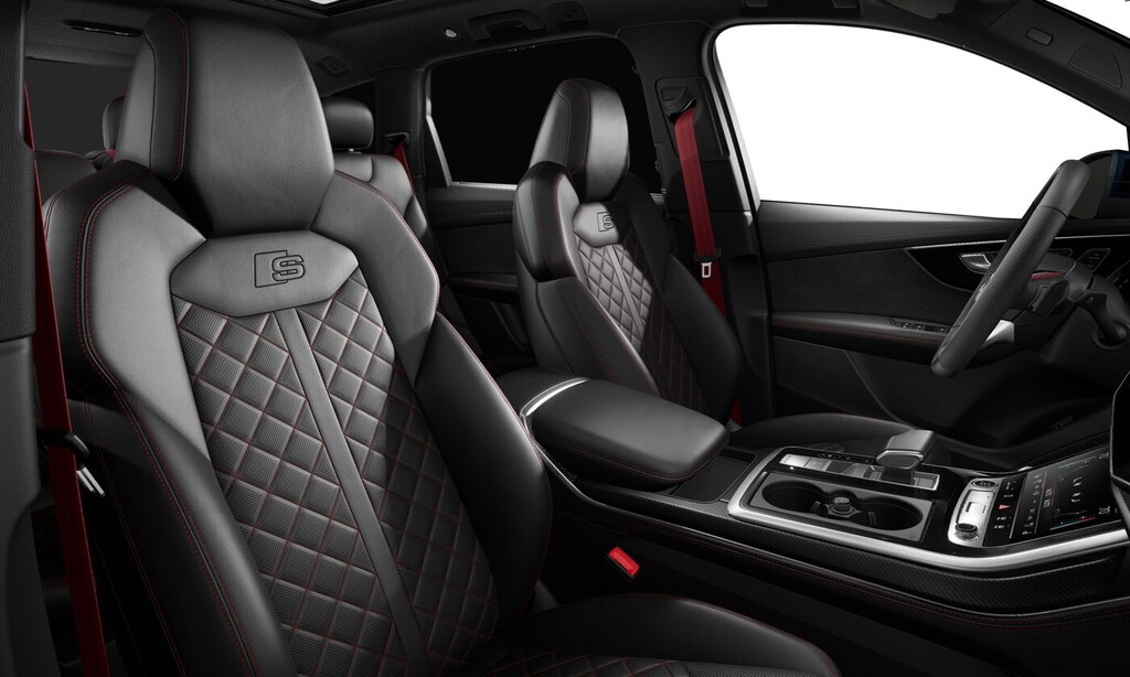 PRESTIGE PACKAGE Head-Up Display, Bang & Olufsen Premium Sound System w/3D Sound, Four-Zone Automatic Climate Control, Control Buttons in Gloss Black w/Haptic Feedback, All-Wheel Steering, Illuminated Door Sills, Top View Camera System w/Virtual 360 View, Adaptive Air Suspension, Dual-Pane Acoustic Glass for Side Windows, Intersection Assist, Heated Rear Seats, LED Interior Lighting Plus Package, Remote Park Assist Plus, Rear Door/Side Windows & Tailgate Sunshades, Heated Steering Wheel, SPORT PLUS PACKAGE Model Badge Delete, Crimson Red Interior Stitching & Seat Belts, Carbon Twill Matte Inlays, Sport Seats Plus, Black Optic Exterior Trim & Roof Rails, S Line Exterior, 21 5-Double-Spoke-Design Wheels w/Bicolor Finish, Anthracite Audi Rings, 285/40R21 109H XL All-Season Tires, Extended Leather Package, Dash, upper doors, center console and armrests, Sport Adaptive Air Suspension, Stainless Steel Pedal Caps, Dark Chrome Exhaust Tips, Red Brake Calipers, TRAILER HITCH 7700 lbs Towing Capacity, 7-Pin Adapter. Rear Spoiler, MP3 Player, Remote Trunk Release, Privacy Glass, Keyless Entry.