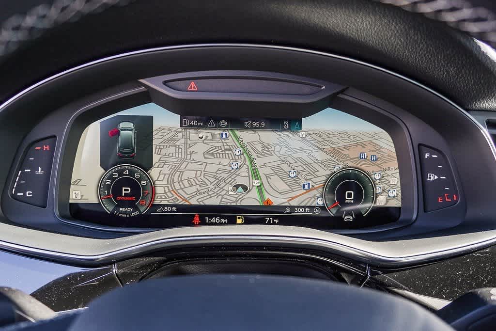Leather Seats, Third Row Seat, Navigation, Sunroof, Panoramic Roof, All Wheel Drive, Power Liftgate, Turbocharged, Satellite Radio, iPod/MP3 Input, Onboard Communications System, Keyless Start, Apple CarPlay®, Cross-Traffic Alert, Brake Actuated Limited Slip Differential. Audi Premium Plus with Mythos Black metallic exterior and Black interior features a V6 Cylinder Engine with 335 HP at 5700 RPM*.