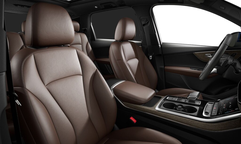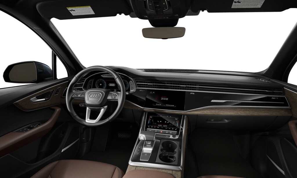 Leather Seats, Third Row Seat, Navigation, Sunroof, Panoramic Roof, All Wheel Drive, Power Liftgate, Rear Air, Heated Driver Seat, Turbocharged, Satellite Radio, iPod/MP3 Input, Onboard Communications System, Keyless Start, Dual Zone A/C. Audi Premium with Waitomo Blue metallic exterior and Okapi Brown interior features a 4 Cylinder Engine.