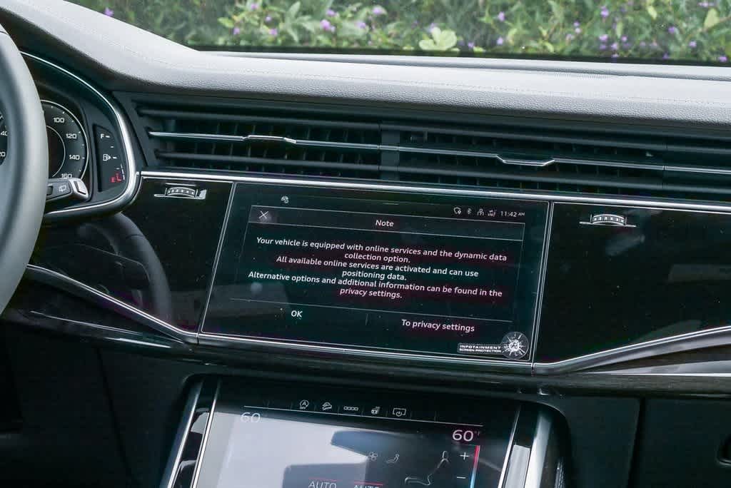 PREMIUM PLUS PACKAGE Power Rear Side Windows w/Manual Tailgate Sunshades, Bang & Olufsen Premium Sound System w/3D Sound, 4-Zone Automatic Climate Control, 4-Way Power Lumbar for Passenger Seat, Front Seats w/Ventilation, Top View Camera System w/Virtual 360 View, Adaptive Air Suspension, Control Buttons in Gloss Black w/Haptic Feedback, Heated Steering Wheel, Illuminated Door Sills, Dual-Pane Acoustic Glass for Side Windows, Heated Rear Seats, LED Interior Lighting Plus Package, S LINE BLACK OPTIC PACKAGE 22 5-Double-Arm Design Wheels w/Bicolor Finish, Black Exterior Trim, door blades, grille, roof rails and window surrounds, Anthracite Gray Audi Rings, 285/40R22 110H XL All-Season Tires, Illuminated S Line Door Sills, S Line Exterior, Dark Chrome Exhaust Tips, TRAILER HITCH 7,700 lbs, towing capacity, 7-Pin Adapter. Rear Spoiler, MP3 Player, Privacy Glass, Keyless Entry, Remote Trunk Release.