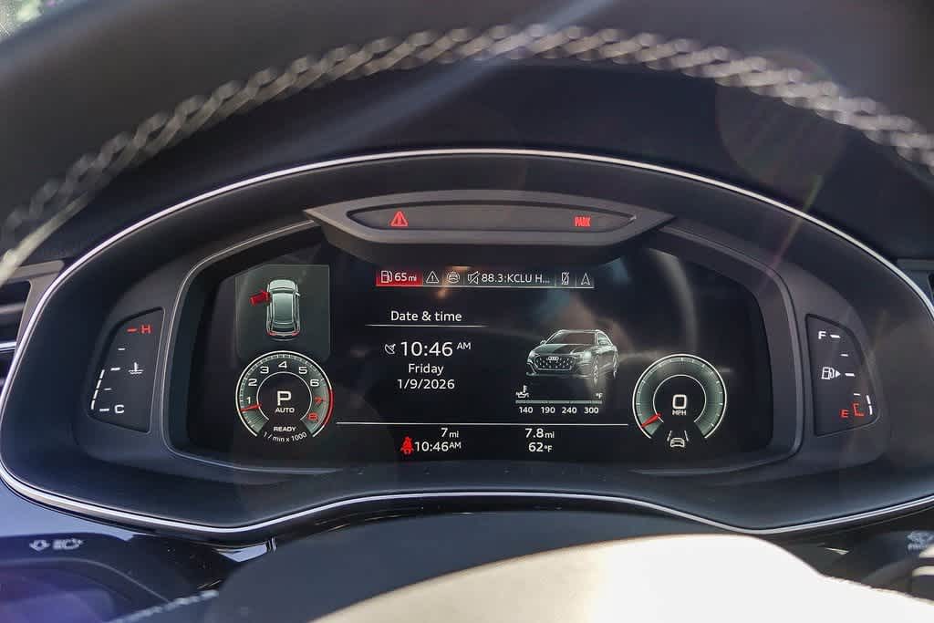PREMIUM PLUS PACKAGE Power Rear Side Windows w/Manual Tailgate Sunshades, Bang & Olufsen Premium Sound System w/3D Sound, 4-Zone Automatic Climate Control, 4-Way Power Lumbar for Passenger Seat, Front Seats w/Ventilation, Top View Camera System w/Virtual 360 View, Adaptive Air Suspension, Control Buttons in Gloss Black w/Haptic Feedback, Heated Steering Wheel, Illuminated Door Sills, Dual-Pane Acoustic Glass for Side Windows, Heated Rear Seats, LED Interior Lighting Plus Package, S LINE BLACK OPTIC PACKAGE 22 5-Double-Arm Design Wheels w/Bicolor Finish, Black Exterior Trim, door blades, grille, roof rails and window surrounds, Anthracite Gray Audi Rings, 285/40R22 110H XL All-Season Tires, Illuminated S Line Door Sills, S Line Exterior, Dark Chrome Exhaust Tips, TRAILER HITCH 7,700 lbs, towing capacity, 7-Pin Adapter. Rear Spoiler, MP3 Player, Privacy Glass, Keyless Entry, Remote Trunk Release.