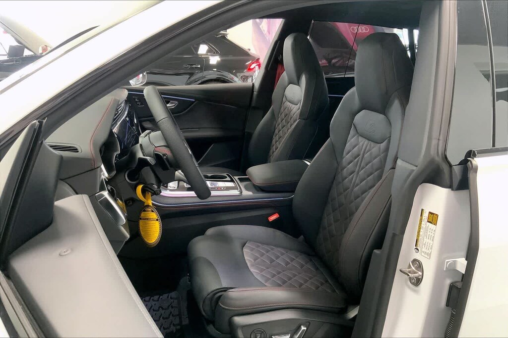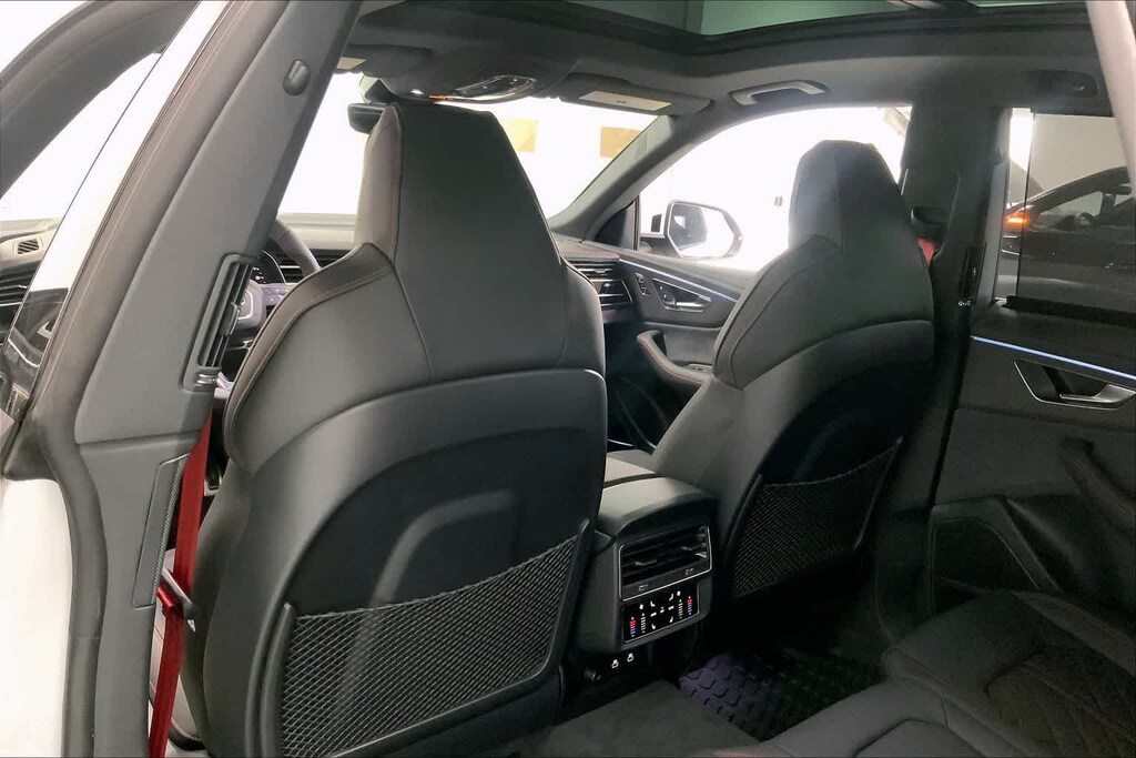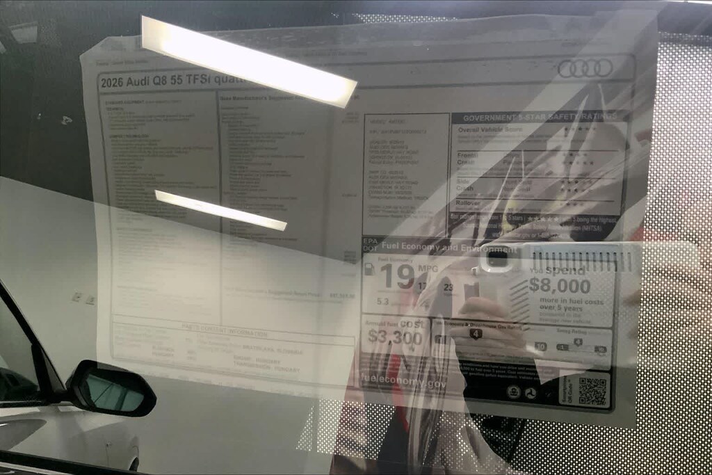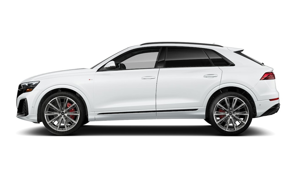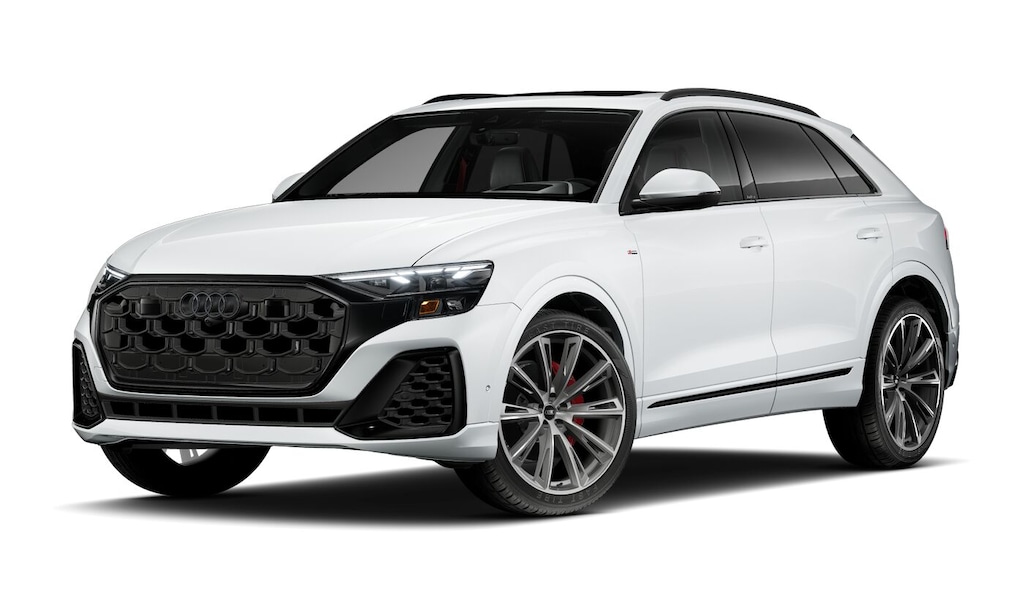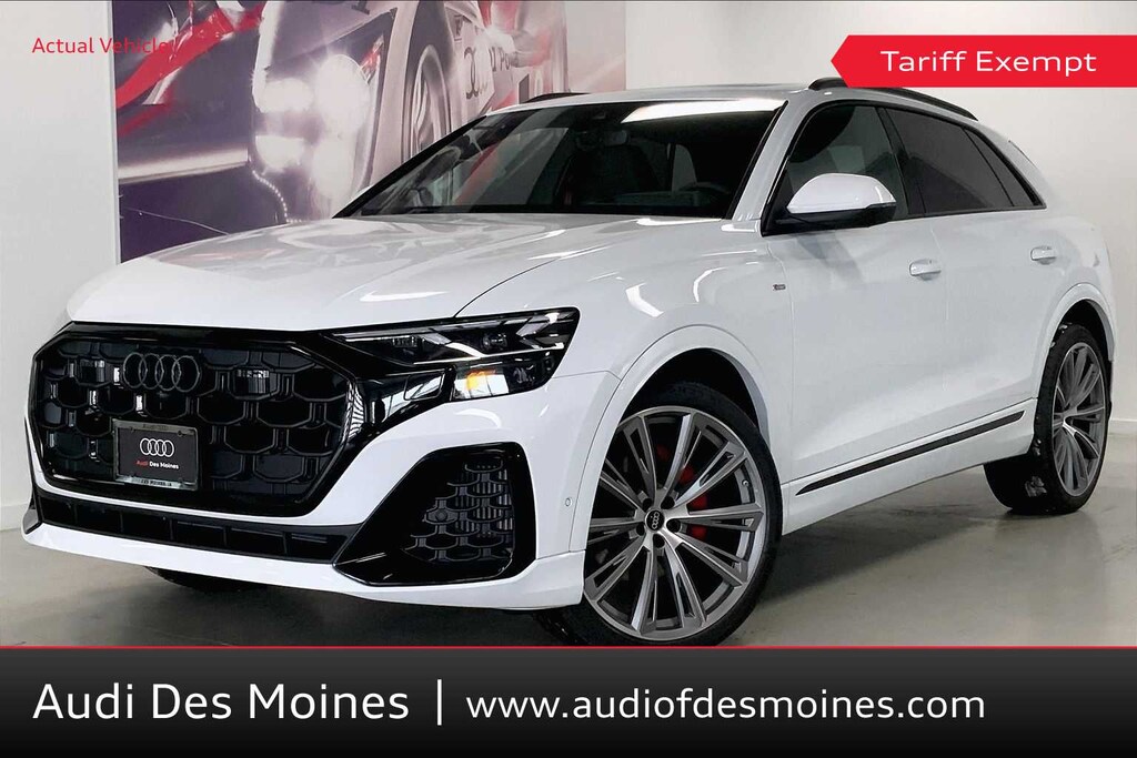 Q8 is nicely equipped with 10 Speakers, 4-Wheel Disc Brakes, ABS brakes, Adaptive suspension, Air Conditioning, Alloy wheels, AM/FM radio, Audi Sound System, Auto High-beam Headlights, Auto-dimming door mirrors, Auto-dimming Rear-View mirror, Automatic temperature control, Brake assist, Bumpers: body-color, Compass, Delay-off headlights, Driver door bin, Driver vanity mirror, Dual front impact airbags, Dual front side impact airbags, Electronic Stability Control, Emergency communication system: Audi connect CARE, Exterior Parking Camera Rear, Four wheel independent suspension, Front anti-roll bar, Front Bucket Seats, Front Center Armrest, Front dual zone A/C, Front fog lights, Front reading lights, Fully automatic headlights, Garage door transmitter: HomeLink, Genuine wood door panel insert, Heated door mirrors, Heated Front Bucket Seats, Heated front seats, Illuminated entry, Leather Seating Surfaces, Leather Shift Knob, Leather steering wheel, Low tire pressure warning, Memory seat, Navigation system: Audi MMI Navigation plus with Touch Response, Occupant sensing airbag, Outside temperature display, Overhead airbag, Overhead console, Panic alarm, Passenger door bin, Passenger vanity mirror, Power door mirrors, Power driver seat, Power Liftgate, Power moonroof: Panoramic, Power passenger seat, Power steering, Power windows, Radio data system, Radio: Audi MMI Navigation Plus with MMI Touch Response, Rain sensing wipers, Rear air conditioning, Rear anti-roll bar, Rear fog lights, Rear reading lights, Rear seat center armrest, Rear side impact airbag, Rear window defroster, Rear window wiper, Remote keyless entry, Security system, Speed control, Speed-sensing steering, Split folding rear seat, Spoiler, Steering wheel memory, Steering wheel mounted audio controls, Tachometer, Telescoping steering wheel, Tilt steering wheel, Traction control, Trip computer, Turn signal indicator mirrors, Variably intermittent wipers, and Wheels: 21 5-W-Spoke Design with Bicolor Finish. Price includes: $4000 - National Customer Credit. Exp. 02/02/2026