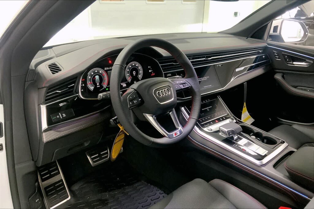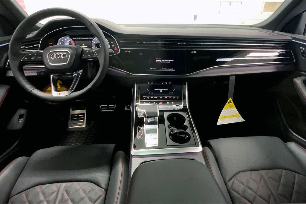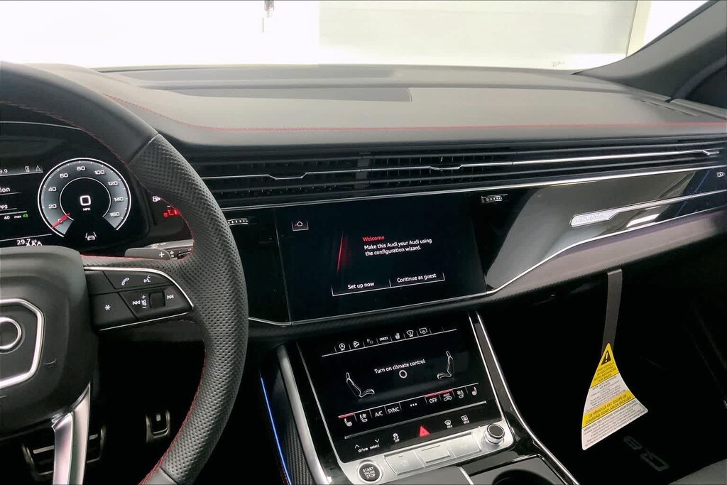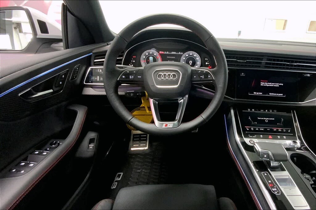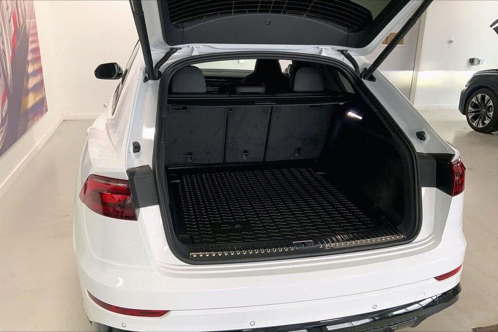 Q8 is nicely equipped with 10 Speakers, 4-Wheel Disc Brakes, ABS brakes, Adaptive suspension, Air Conditioning, Alloy wheels, AM/FM radio, Audi Sound System, Auto High-beam Headlights, Auto-dimming door mirrors, Auto-dimming Rear-View mirror, Automatic temperature control, Brake assist, Bumpers: body-color, Compass, Delay-off headlights, Driver door bin, Driver vanity mirror, Dual front impact airbags, Dual front side impact airbags, Electronic Stability Control, Emergency communication system: Audi connect CARE, Exterior Parking Camera Rear, Four wheel independent suspension, Front anti-roll bar, Front Bucket Seats, Front Center Armrest, Front dual zone A/C, Front fog lights, Front reading lights, Fully automatic headlights, Garage door transmitter: HomeLink, Genuine wood door panel insert, Heated door mirrors, Heated Front Bucket Seats, Heated front seats, Illuminated entry, Leather Seating Surfaces, Leather Shift Knob, Leather steering wheel, Low tire pressure warning, Memory seat, Navigation system: Audi MMI Navigation plus with Touch Response, Occupant sensing airbag, Outside temperature display, Overhead airbag, Overhead console, Panic alarm, Passenger door bin, Passenger vanity mirror, Power door mirrors, Power driver seat, Power Liftgate, Power moonroof: Panoramic, Power passenger seat, Power steering, Power windows, Radio data system, Radio: Audi MMI Navigation Plus with MMI Touch Response, Rain sensing wipers, Rear air conditioning, Rear anti-roll bar, Rear fog lights, Rear reading lights, Rear seat center armrest, Rear side impact airbag, Rear window defroster, Rear window wiper, Remote keyless entry, Security system, Speed control, Speed-sensing steering, Split folding rear seat, Spoiler, Steering wheel memory, Steering wheel mounted audio controls, Tachometer, Telescoping steering wheel, Tilt steering wheel, Traction control, Trip computer, Turn signal indicator mirrors, Variably intermittent wipers, and Wheels: 21 5-W-Spoke Design with Bicolor Finish. Price includes: $4000 - National Customer Credit. Exp. 02/02/2026