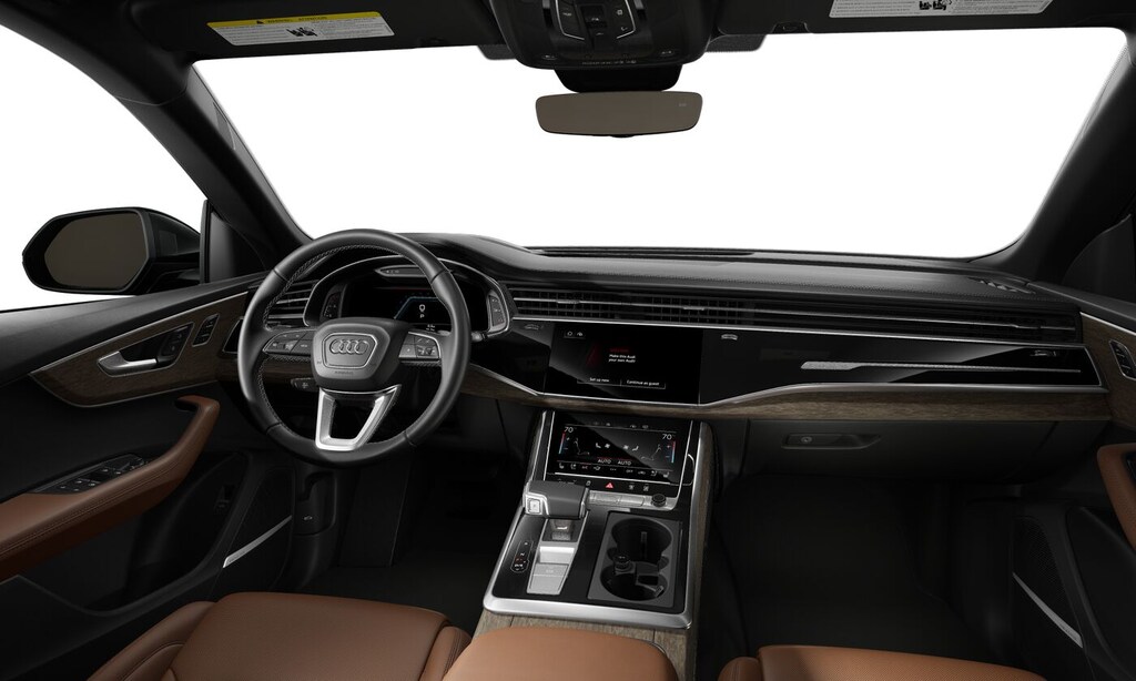 Q8 is nicely equipped with 10 Speakers, 4-Wheel Disc Brakes, ABS brakes, Adaptive suspension, Air Conditioning, Alloy wheels, AM/FM radio, Audi Sound System, Auto High-beam Headlights, Auto-dimming door mirrors, Auto-dimming Rear-View mirror, Automatic temperature control, Brake assist, Bumpers: body-color, Compass, Delay-off headlights, Driver door bin, Driver vanity mirror, Dual front impact airbags, Dual front side impact airbags, Electronic Stability Control, Emergency communication system: Audi connect CARE, Exterior Parking Camera Rear, Four wheel independent suspension, Front anti-roll bar, Front Bucket Seats, Front Center Armrest, Front dual zone A/C, Front fog lights, Front reading lights, Fully automatic headlights, Garage door transmitter: HomeLink, Genuine wood door panel insert, Heated door mirrors, Heated Front Bucket Seats, Heated front seats, Illuminated entry, Leather Seating Surfaces, Leather Shift Knob, Leather steering wheel, Low tire pressure warning, Memory seat, Navigation system: Audi MMI Navigation plus with Touch Response, Occupant sensing airbag, Outside temperature display, Overhead airbag, Overhead console, Panic alarm, Passenger door bin, Passenger vanity mirror, Power door mirrors, Power driver seat, Power Liftgate, Power moonroof: Panoramic, Power passenger seat, Power steering, Power windows, Radio data system, Radio: Audi MMI Navigation Plus with MMI Touch Response, Rain sensing wipers, Rear air conditioning, Rear anti-roll bar, Rear fog lights, Rear reading lights, Rear seat center armrest, Rear side impact airbag, Rear window defroster, Rear window wiper, Remote keyless entry, Security system, Speed control, Speed-sensing steering, Split folding rear seat, Spoiler, Steering wheel memory, Steering wheel mounted audio controls, Tachometer, Telescoping steering wheel, Tilt steering wheel, Traction control, Trip computer, Turn signal indicator mirrors, Variably intermittent wipers, and Wheels: 21 5-W-Spoke Design with Bicolor Finish. Price includes: $4000 - National Customer Credit. Exp. 03/02/2026