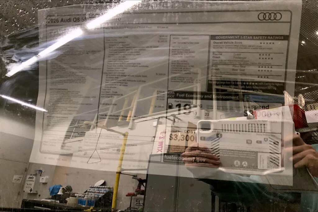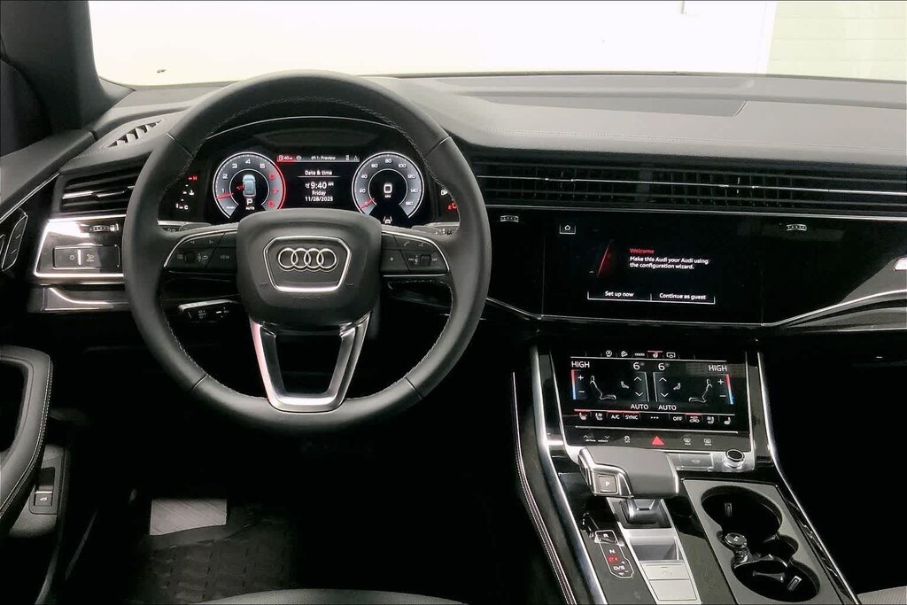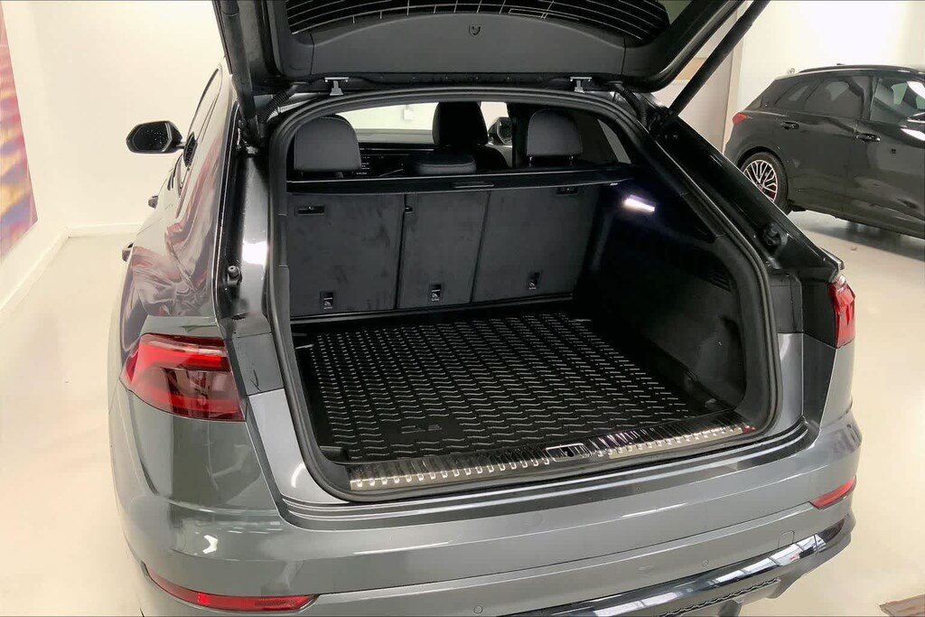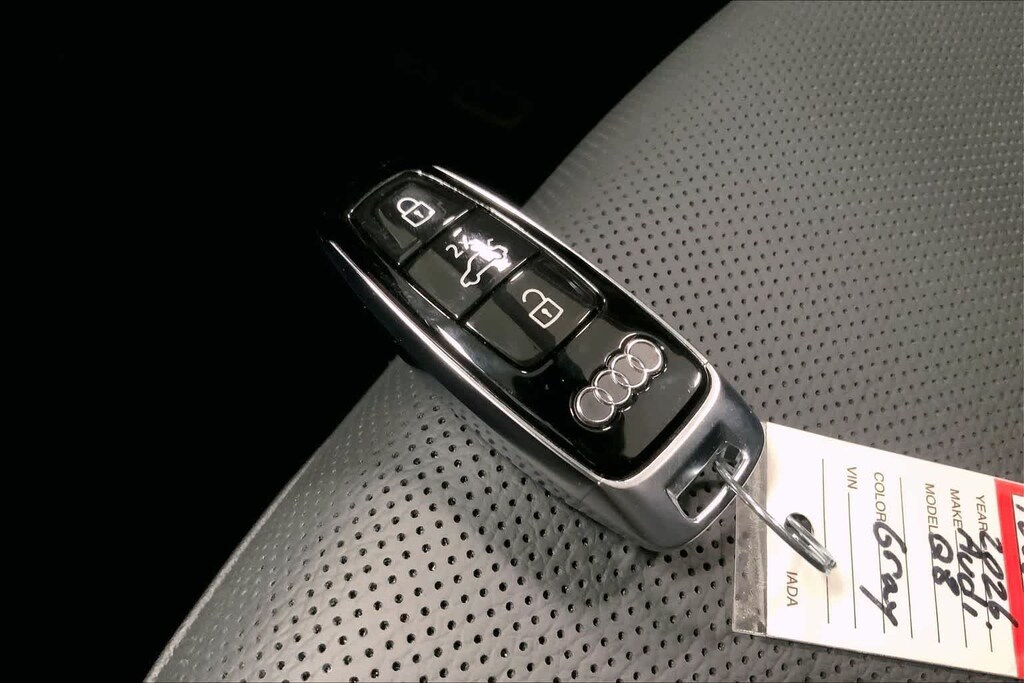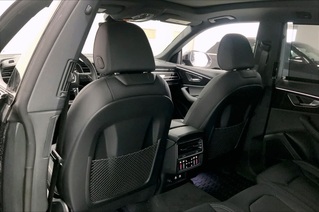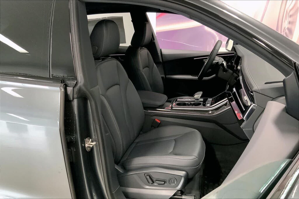 Q8 is nicely equipped with 10 Speakers, 4-Wheel Disc Brakes, ABS brakes, Adaptive suspension, Air Conditioning, Alloy wheels, AM/FM radio, Audi Sound System, Auto High-beam Headlights, Auto-dimming door mirrors, Auto-dimming Rear-View mirror, Automatic temperature control, Brake assist, Bumpers: body-color, Compass, Delay-off headlights, Driver door bin, Driver vanity mirror, Dual front impact airbags, Dual front side impact airbags, Electronic Stability Control, Emergency communication system: Audi connect CARE, Exterior Parking Camera Rear, Four wheel independent suspension, Front anti-roll bar, Front Bucket Seats, Front Center Armrest, Front dual zone A/C, Front fog lights, Front reading lights, Fully automatic headlights, Garage door transmitter: HomeLink, Genuine wood door panel insert, Heated door mirrors, Heated Front Bucket Seats, Heated front seats, Illuminated entry, Leather Seating Surfaces, Leather Shift Knob, Leather steering wheel, Low tire pressure warning, Memory seat, Navigation system: Audi MMI Navigation plus with Touch Response, Occupant sensing airbag, Outside temperature display, Overhead airbag, Overhead console, Panic alarm, Passenger door bin, Passenger vanity mirror, Power door mirrors, Power driver seat, Power Liftgate, Power moonroof: Panoramic, Power passenger seat, Power steering, Power windows, Radio data system, Radio: Audi MMI Navigation Plus with MMI Touch Response, Rain sensing wipers, Rear air conditioning, Rear anti-roll bar, Rear fog lights, Rear reading lights, Rear seat center armrest, Rear side impact airbag, Rear window defroster, Rear window wiper, Remote keyless entry, Security system, Speed control, Speed-sensing steering, Split folding rear seat, Spoiler, Steering wheel memory, Steering wheel mounted audio controls, Tachometer, Telescoping steering wheel, Tilt steering wheel, Traction control, Trip computer, Turn signal indicator mirrors, Variably intermittent wipers, and Wheels: 21 5-W-Spoke Design with Bicolor Finish. Price includes: $4000 - National Customer Credit. Exp. 02/02/2026