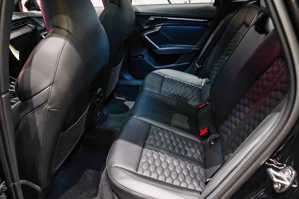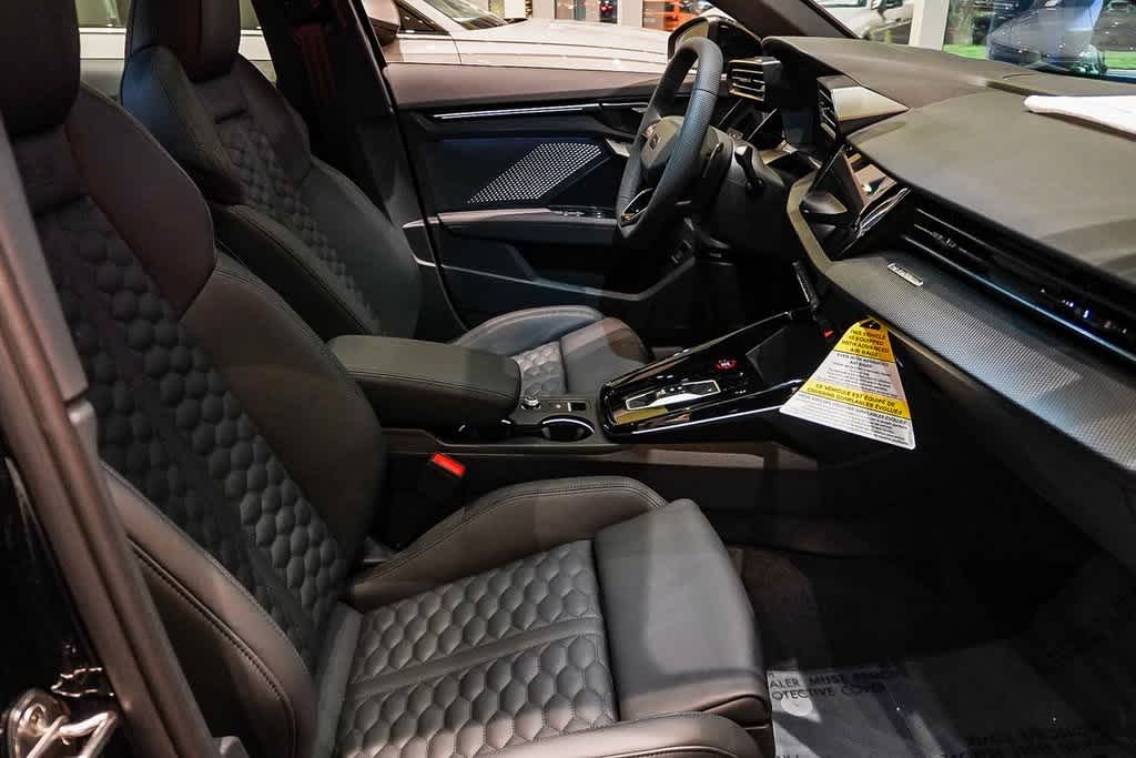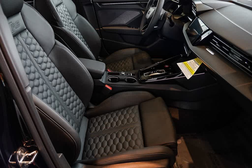 Leather Seats, Navigation, Sunroof, All Wheel Drive, Rear Air, Heated Driver Seat, Back-Up Camera, Turbocharged, Premium Sound System, Satellite Radio, iPod/MP3 Input, Onboard Communications System, Aluminum Wheels, Keyless Start, Dual Zone A/C. Audi RS 3 with Mythos Black metallic exterior and Black interior features a 5 Cylinder Engine with 394 HP at 5600 RPM*.