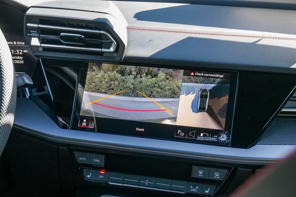 Navigation, Sunroof, All Wheel Drive, Rear Air, Heated Driver Seat, Turbocharged, Premium Sound System, Satellite Radio, iPod/MP3 Input, Onboard Communications System, Keyless Start, Dual Zone A/C, Blind Spot Monitor, WiFi Hotspot, Cross-Traffic Alert. Audi S3 with Mythos Black metallic exterior and Black / Express Red stitching interior features a 4 Cylinder Engine with 328 HP at 5450 RPM*.