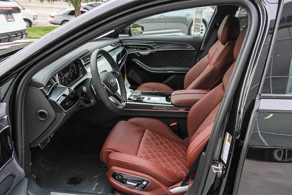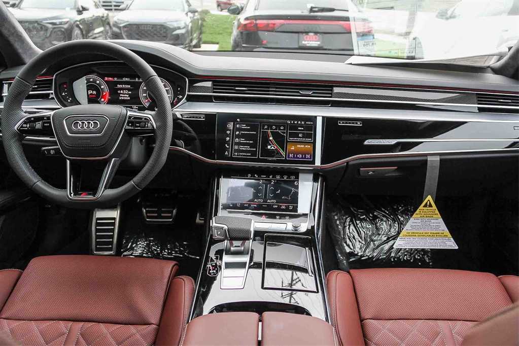 Leather Seats, Navigation, Power Liftgate. Audi S8 with Mythos Black metallic exterior and Merlot Red interior features a 8 Cylinder Engine with 563 HP at 6000 RPM*.