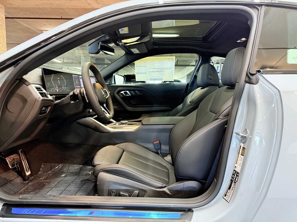 M SPORT PACKAGE Wheels: 18 x 7.5 M Double-Spoke, Style 848M, Bicolor, M Steering Wheel, Rear Spoiler, M Sport Pkg, Variable Sport Steering, M Fine Brushed Aluminum Interior Trim, Without Lines Designation Outside, M Sport Suspension, Aerodynamic Kit, PREMIUM PACKAGE Ambient Lighting, Adaptive Full LED Lights, Comfort Access Keyless Entry, Live Cockpit Pro w/Head-Up Display, Heated Steering Wheel, Moonroof, Automatic High Beams, Universal Garage-Door Opener, harman/kardon® SURROUND SOUND SYSTEM, WHEELS: 19 X 8.0 M DUAL-SPOKE JET BLACK Style 995M, Tires: 225/40R19 All Season, Runflat Tires, LUMBAR SUPPORT. BMW 230i xDrive with Brooklyn Gray Metallic exterior and Black interior features a 4 Cylinder Engine with 255 HP at 5000 RPM*.