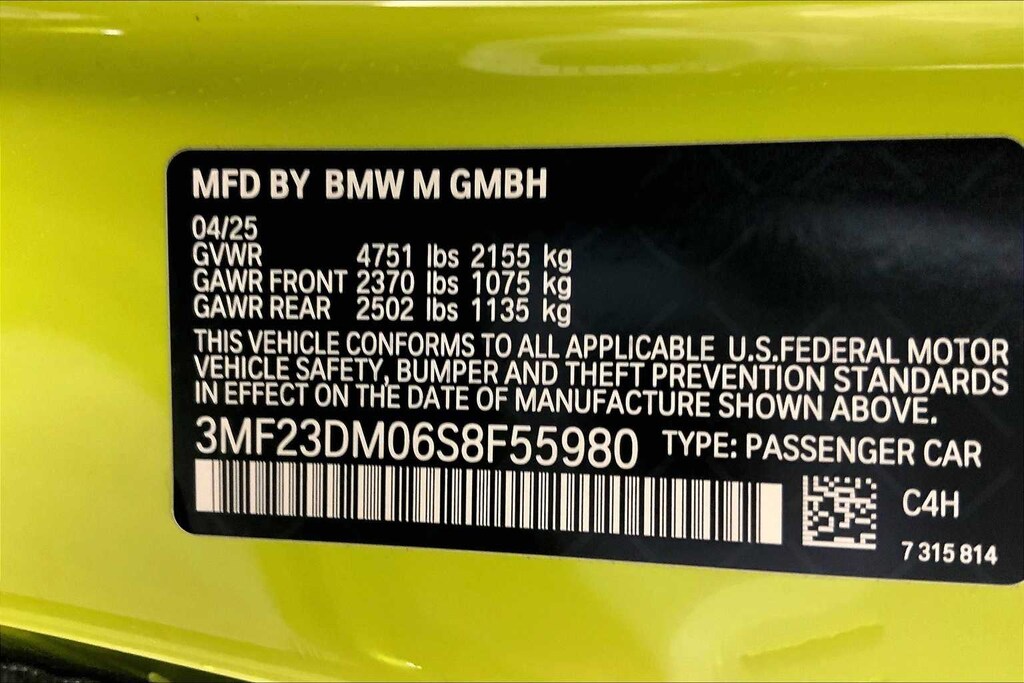 Leather Seats, Rear Air BMW M Models with Sao Paulo Yellow exterior and Black w/M Color Highlight interior features a Straight 6 Cylinder Engine with 473 HP at 6250 RPM*.